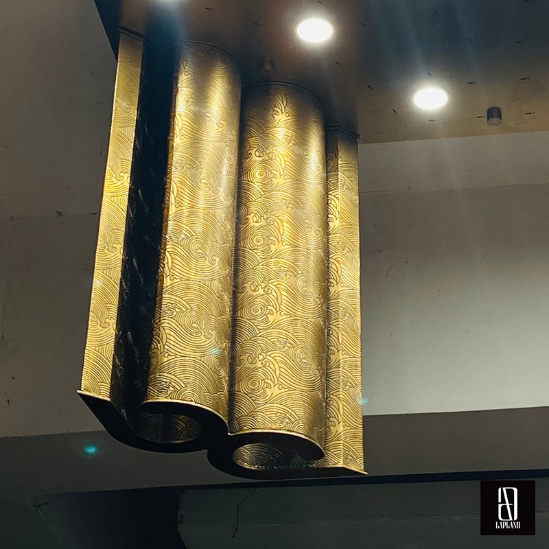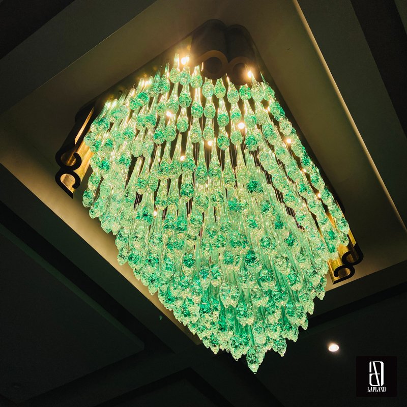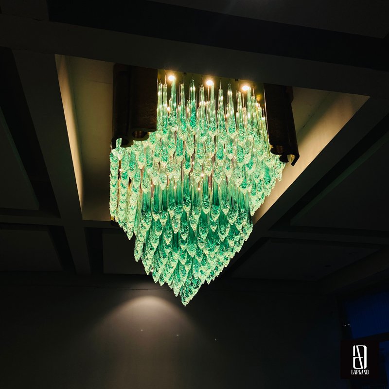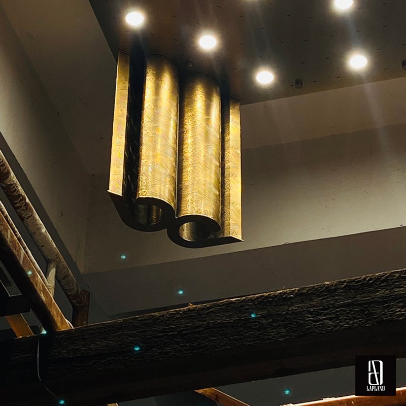The entire lamp combines traditional metal engraving with handcrafted art glass, exuding luxury and sophistication in private clubs while perfectly showcasing the owner's exceptional taste.
