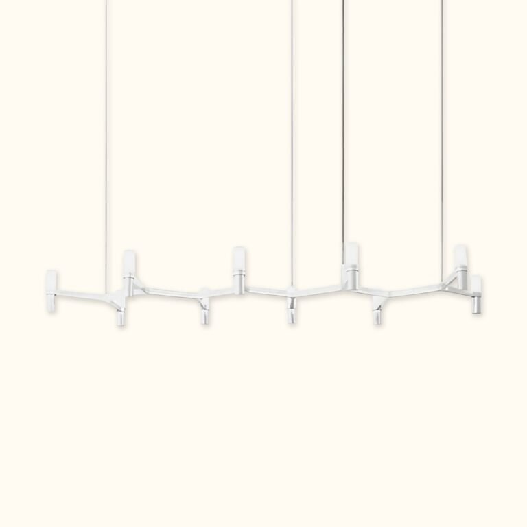 A contemporary design reminiscent of ancient chandeliers, this piece takes inspiration from the shape of snowflakes. It is characterized by