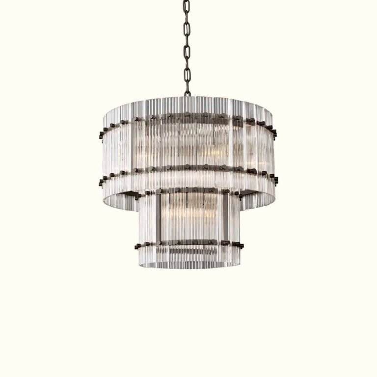 Our fixture, designed by a renowned designer, evokes the glamour of 1960s Italian glass lighting. Dozens of glass panes are