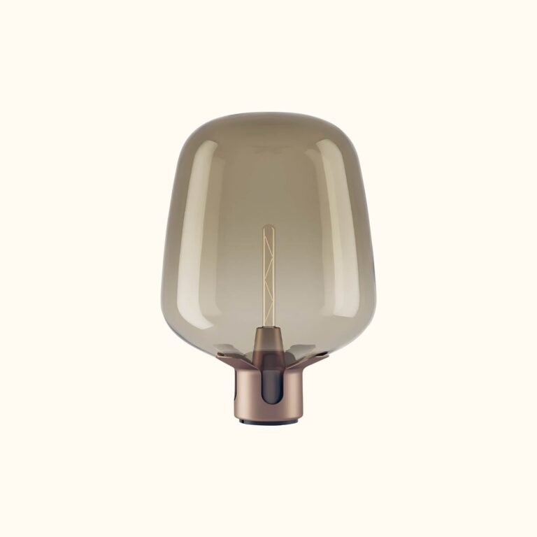 Inspired by traditional storm lanterns that use glass tubes to protect the flame, Flar features a billowing glass shade designed