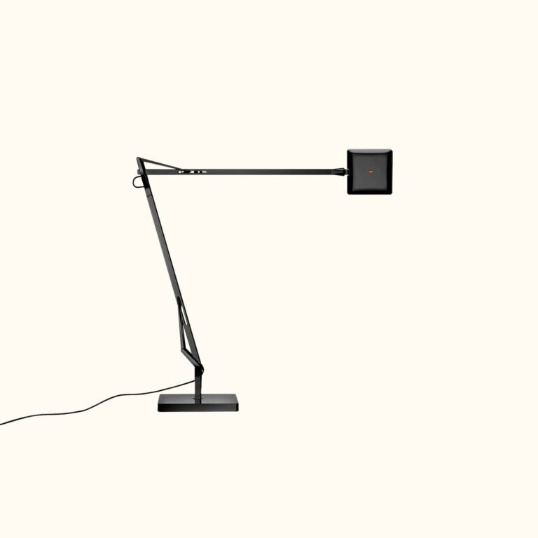 Adjustable table lamp providing direct light. The diffuser is made of photoengraved polycarbonate and aluminate. Edge Lighting technology light source.