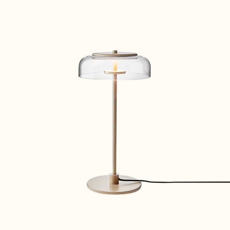 Blossi is a table lamp in mouth-blown clear glass and nordic gold finish. Product Size Size: D23cm * H41cm /