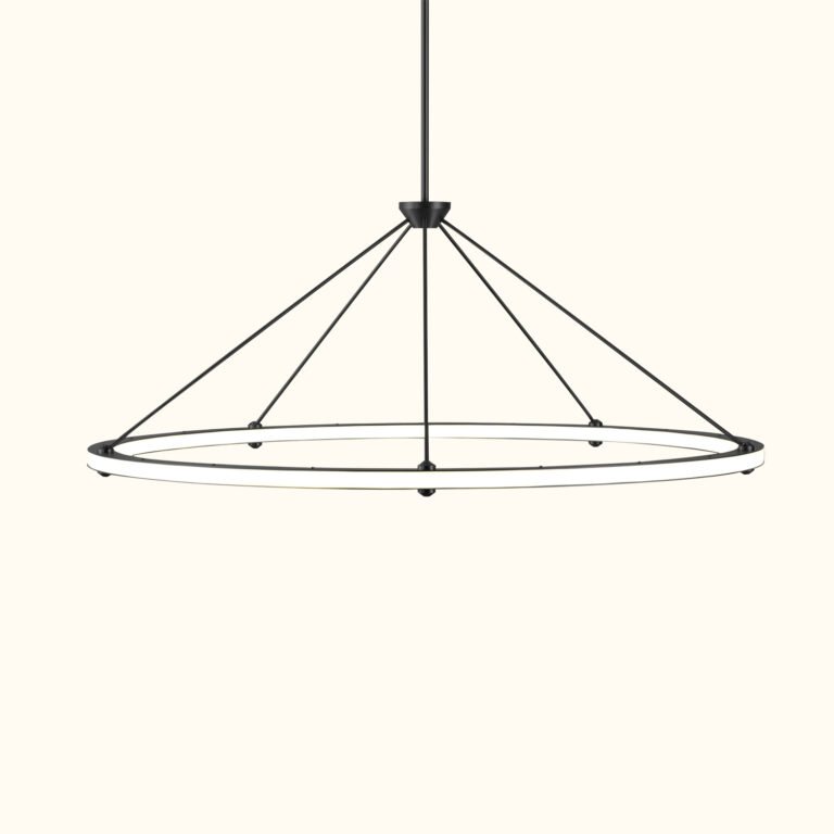 A meticulously crafted ringed suspension fixture in wrought iron and plaster. The perfect fusion of elegance and modern design. Product