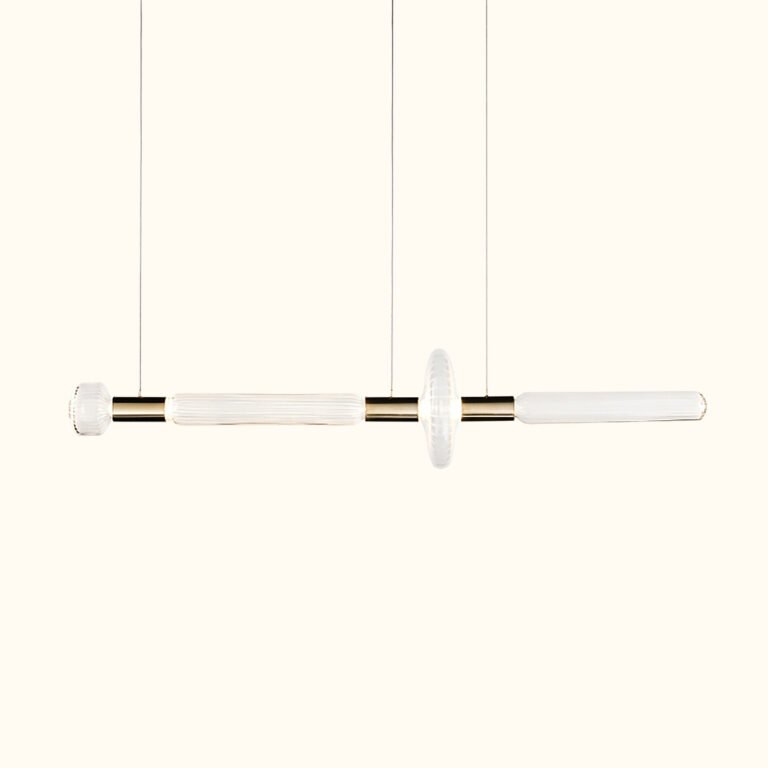 The Cipher series juxtaposes traditional techniques with modern forms. Its exquisite hand-blown crystal cylindrical pieces are crafted with clean, clear