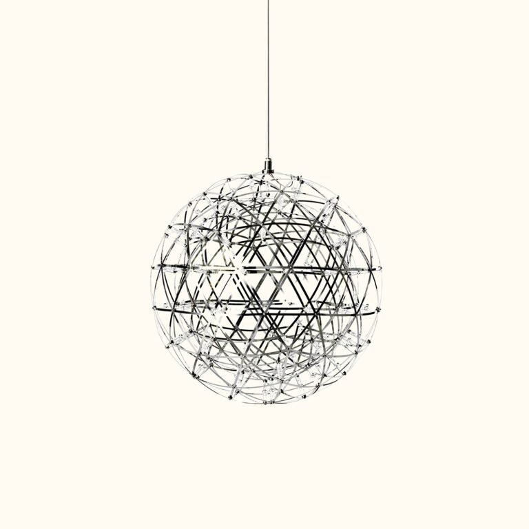 The Raimond light: A perfect sphere made up of mathematical elements, adorned with tiny LED lights. The designer is not