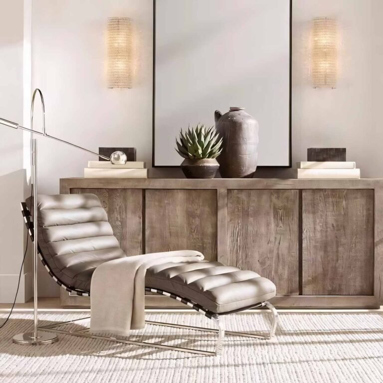 The Deco Sconce bathes the wall in a soft, indirect light, creating a gentle glow. Its bold, geometric design takes