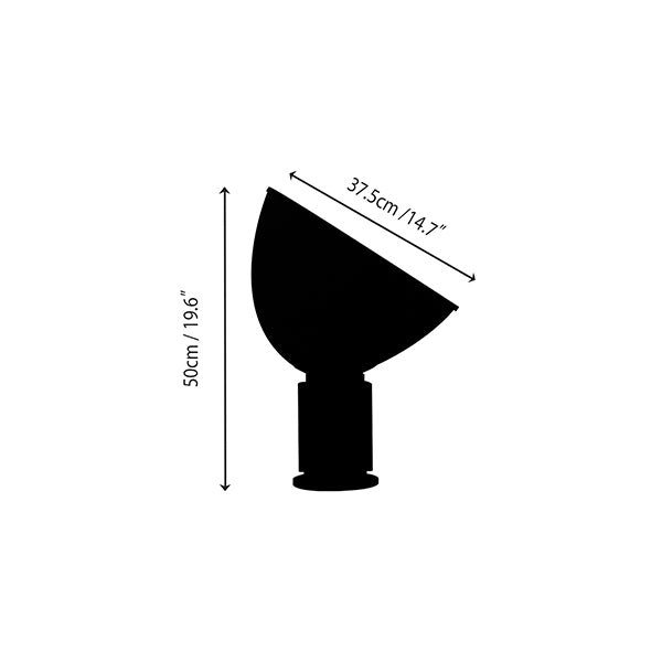 This is a table lamp that provides indirect and reflected light. The reflector is made of painted aluminum, with a gloss white exterior and a matte white interior. The adjustable diffuser is made of transparent blown glass. The body is available in matte black or naturally anodized extruded aluminum. The base is made of nickel-plated ABS+PC material.