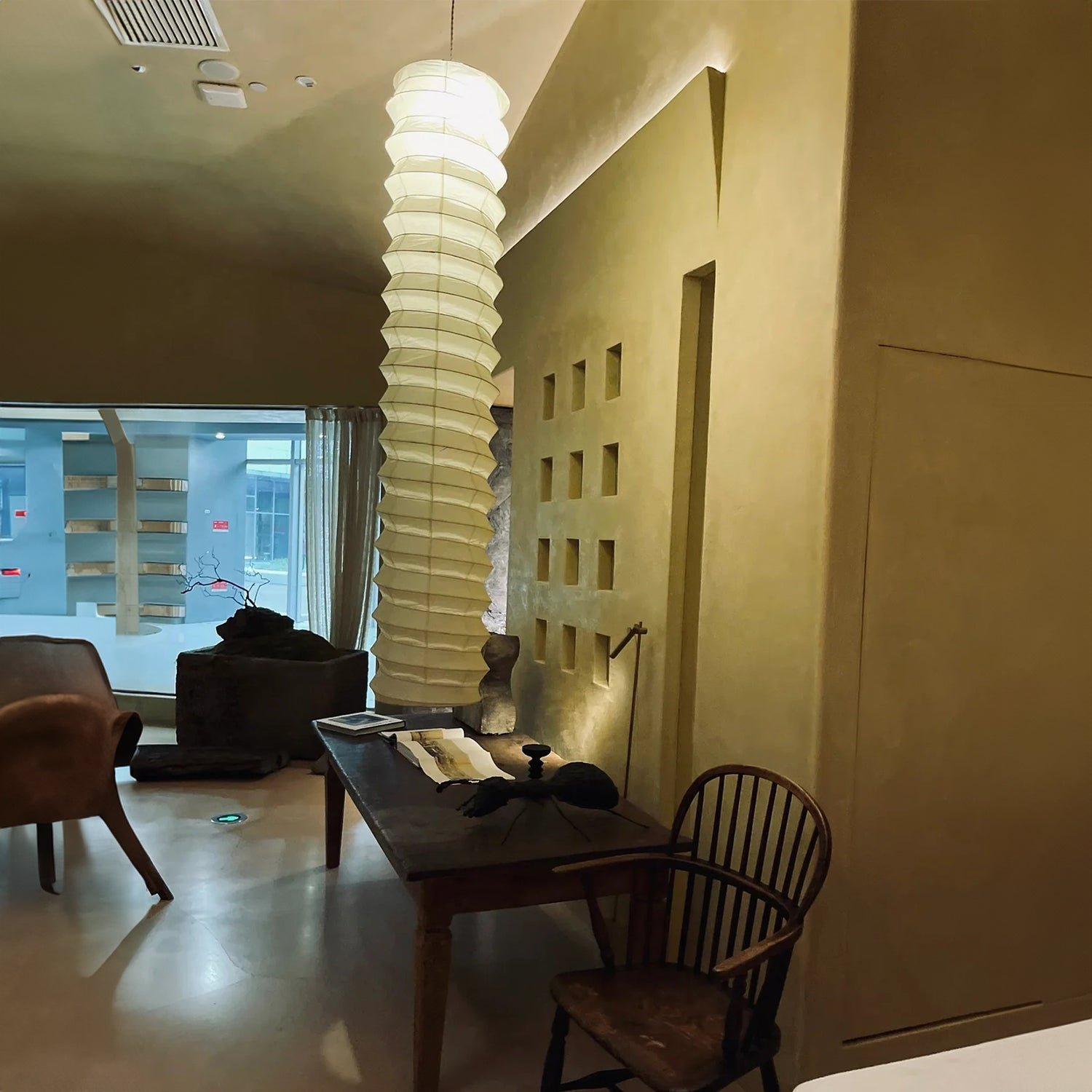The “Akari Series” is regarded as a classic of modern design, handcrafted by Japanese washi artisans. These paper lanterns skillfully blend traditional Japanese craftsmanship with modernist aesthetics, utilizing handmade washi and bamboo ribbing, complemented by a metal frame to showcase a simple and elegant design.