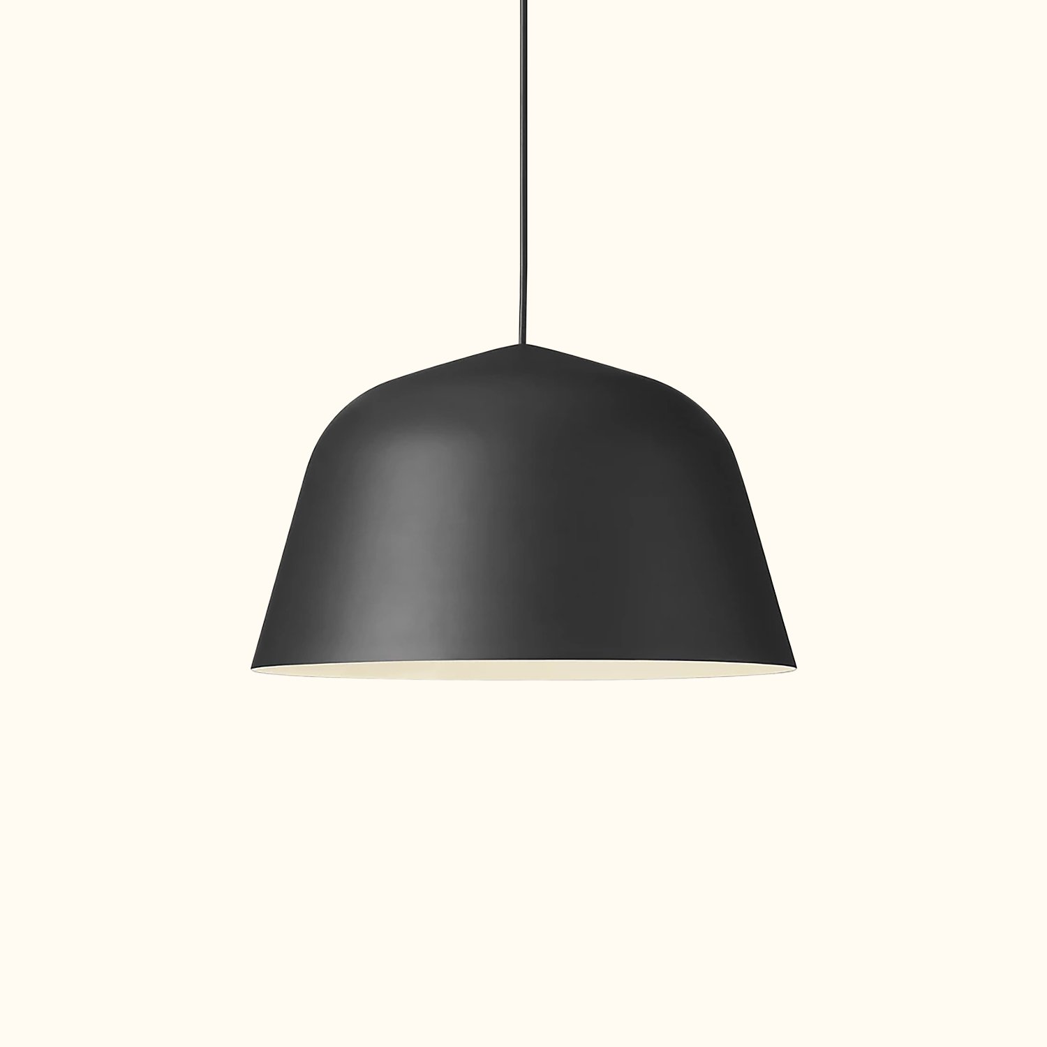 Embodying the values of Scandinavian design, the pendant lamp is both timeless and contemporary. Made of hand-spun aluminum and hand-painted, the pendant lamp features clean lines and a white interior that heighten the contrast of its outer shade while enhancing the light emitted in any home, office, or commercial space. The design can be used on its own or in symmetric formations and vibrant clusters.