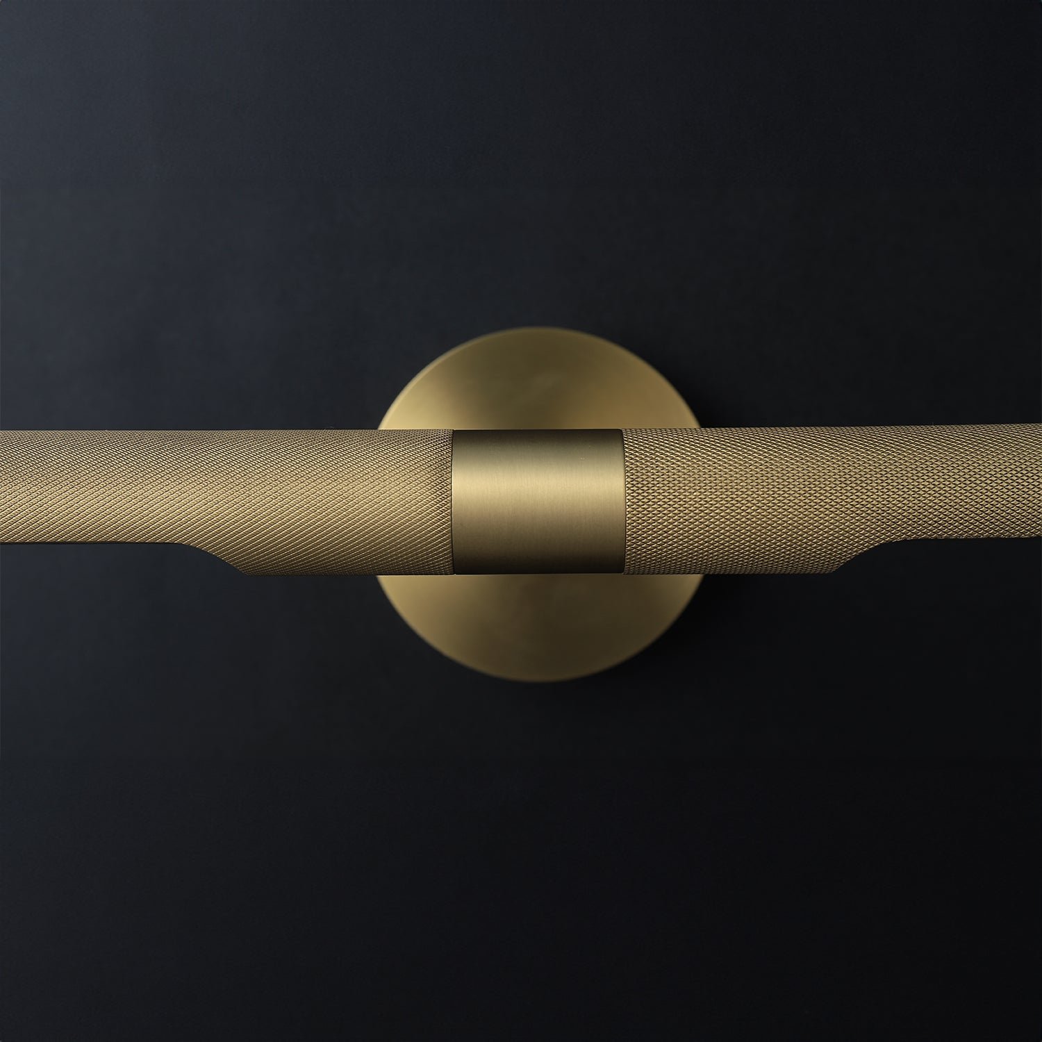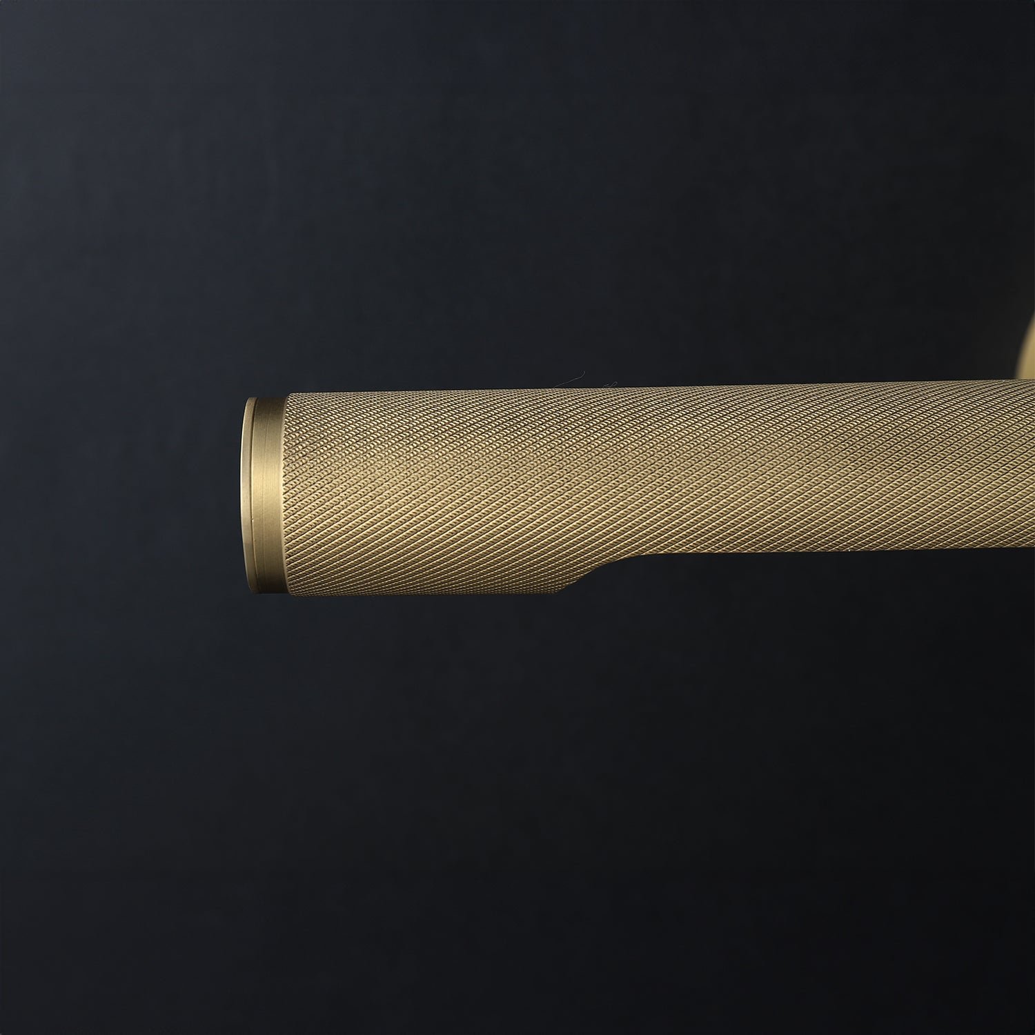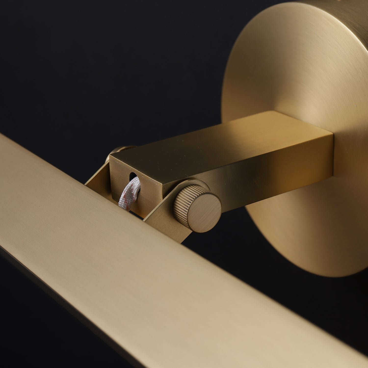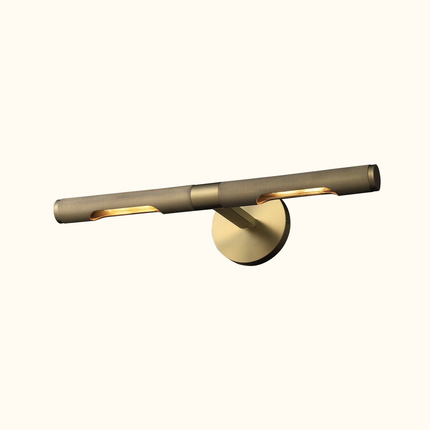Drawing inspiration from the classic museum fixture, lighting designer reinterprets the utilitarian picture light with an elegant touch. Made from solid brass, this fixture combines robust durability with refined proportions. The knurled texture not only provides a practical grip for rotating but also adds an industrial flair.