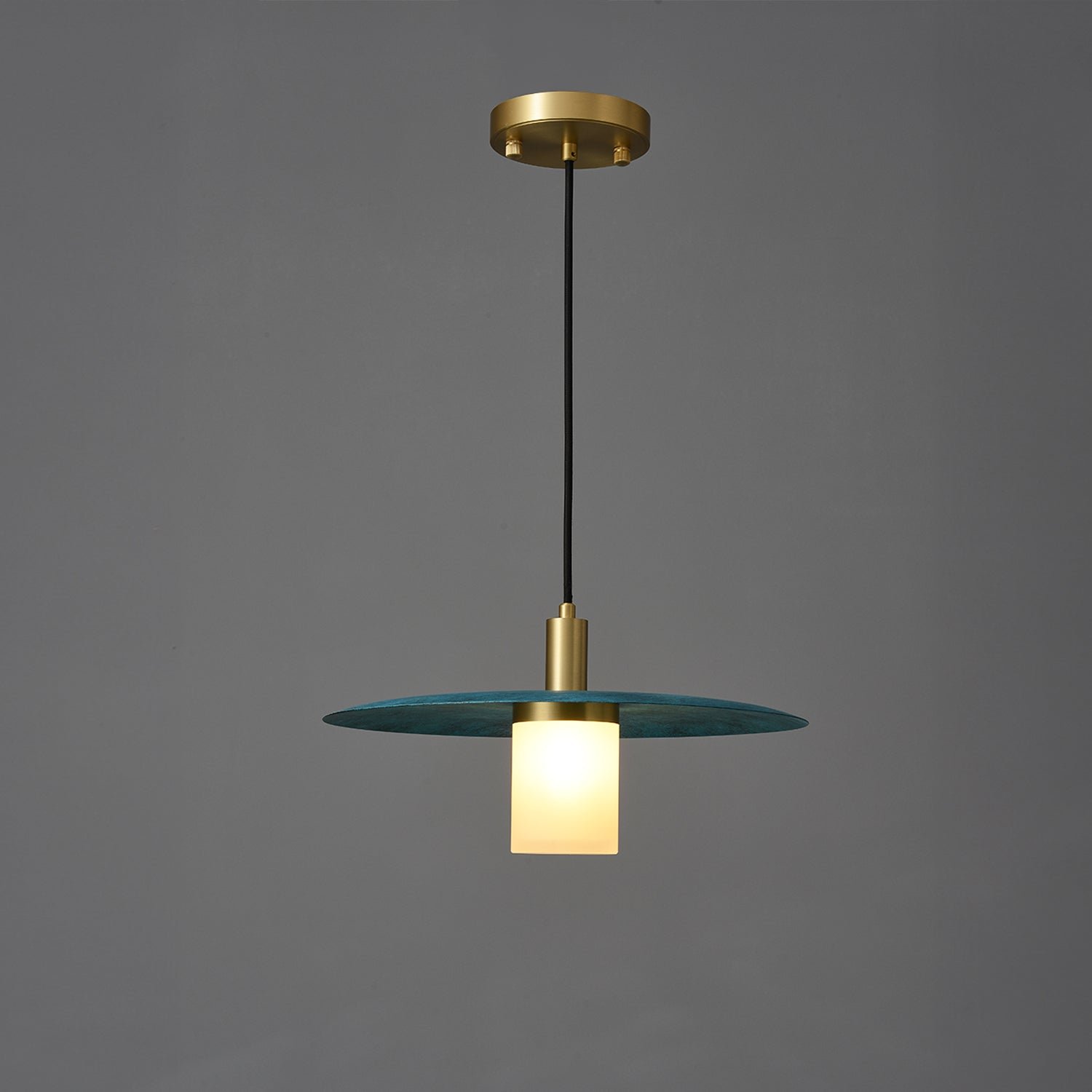 The three-tiered Arthur Pendant showcases Trella’s Prussian Blue patina in an impressive design. An internally lit white glass cylinder highlights the depth of the various finishes while providing a soft accent light. Made to order, the Arthur Pendant allows clients to customize the number of tiers and finish configurations to suit their preferences.