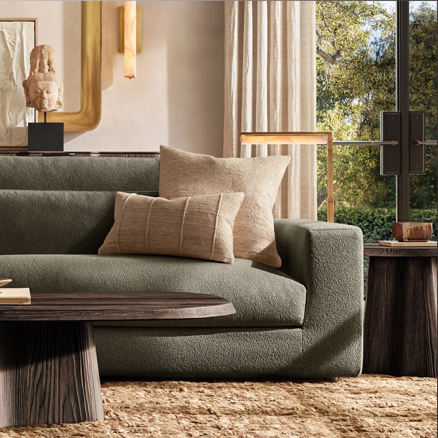 This piece captures the spirit of 1960s Italian minimalism, featuring selenite prisms set in a solid brass frame. The collection is both striking and understated, with slender LED lights emitting a beautiful glow through the translucent stones, evoking the warmth of candlelight.