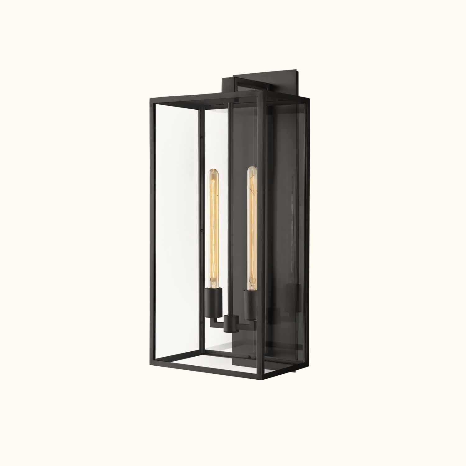 Glass volumes seem to float within airy metal frames in lighting designer modern interpretation of the classic lantern. Inspired by the glass-and-steel architecture of the International Style, the collection’s strong linear forms transcend the utilitarian with elegant proportions and a sense of weightlessness.