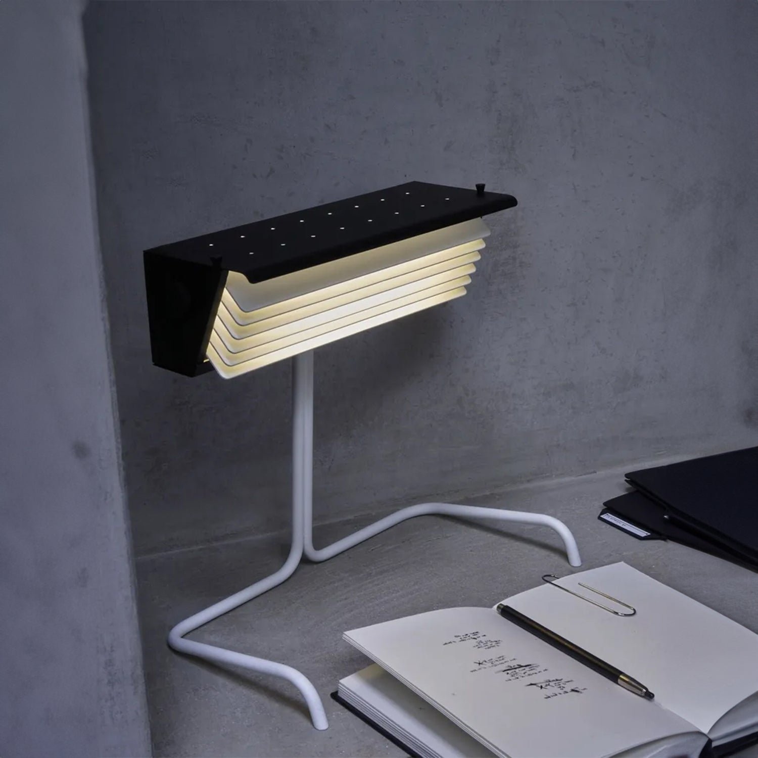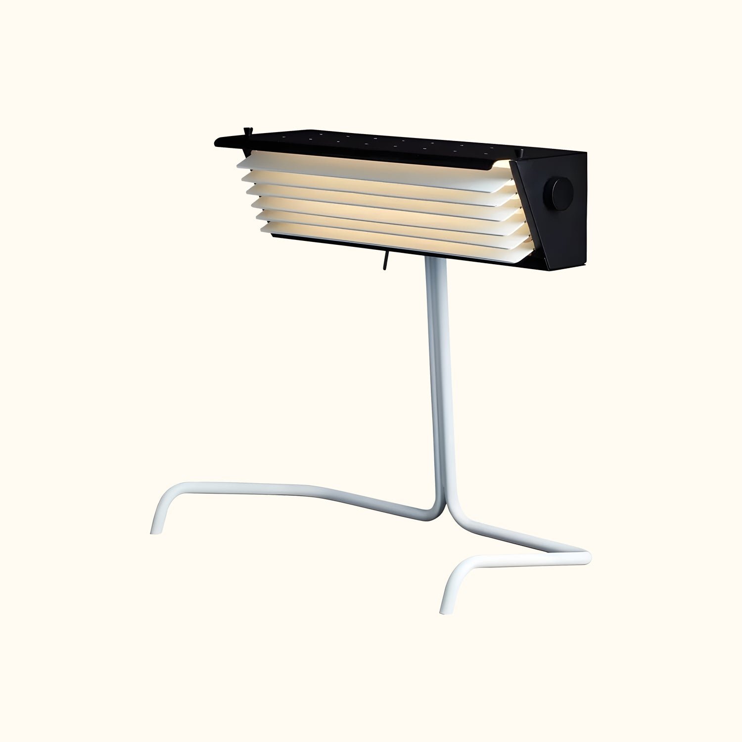 The Biny table lamp is like an extraterrestrial creature in the world of lighting. Some people compare it to a robot, others see it as a cartoon character, while some view it as a radically efficient minimalist object. Designed in 1957, it still retains its modern appeal.To make reading easier, Biny incorporated “blinds” that can direct the light onto the reading surface. For a gentler yet powerful light, this redesigned version uses 2700K LED technology and features blinds controlled by a Flap Wheel.