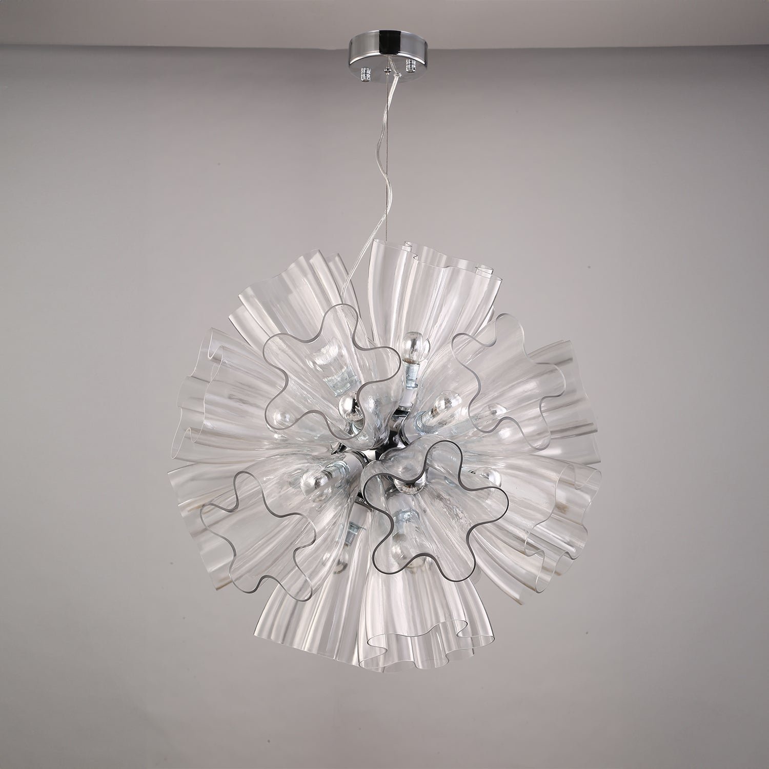 Blum from Axo Light is a striking collection of glass crystal pendants. Designed by Marcello Furlan in 2007, the Blum series is available in two sizes, featuring either 31 or 19 glass pieces assembled to create the crystal diffuser. The pendants come in both transparent and chromed glass options.
