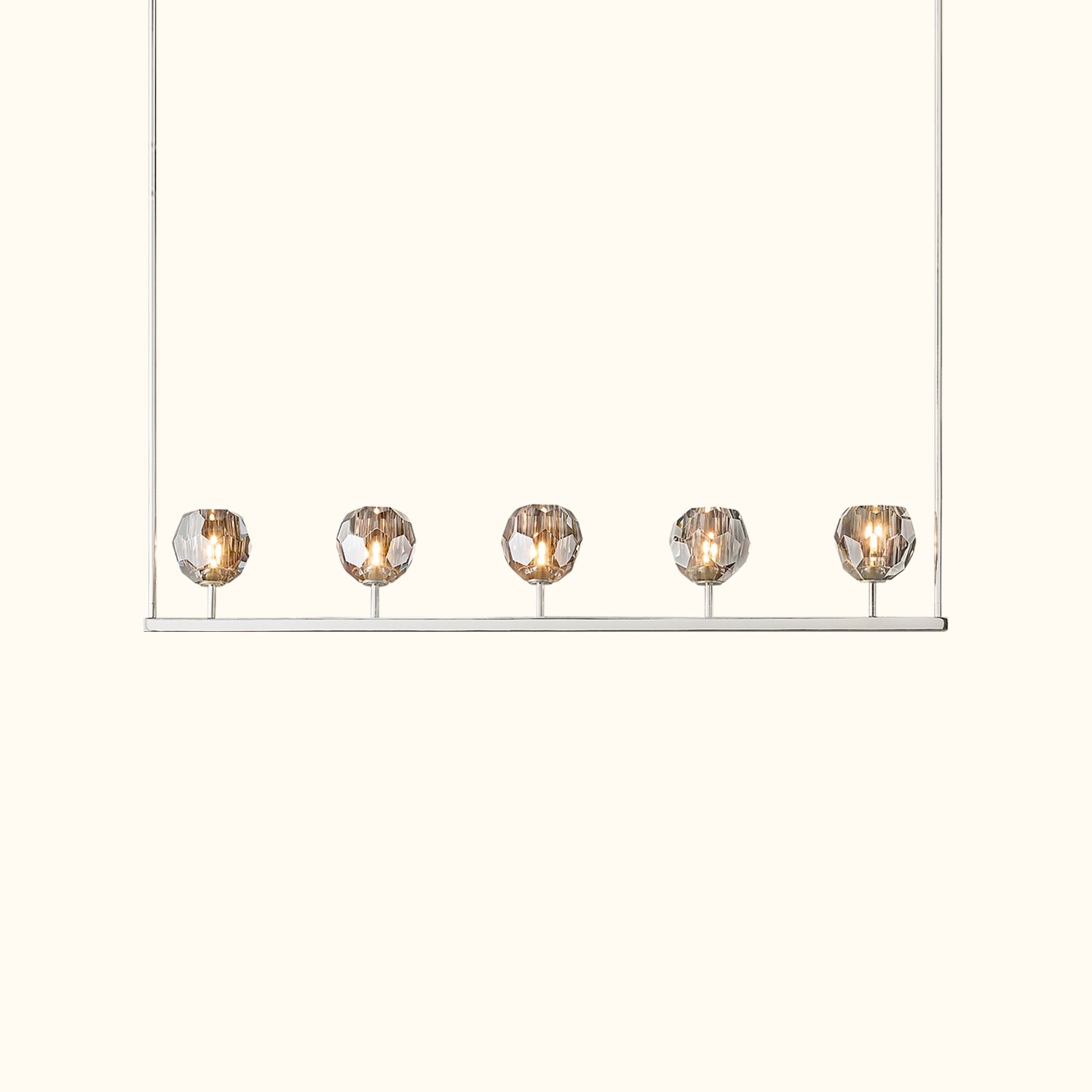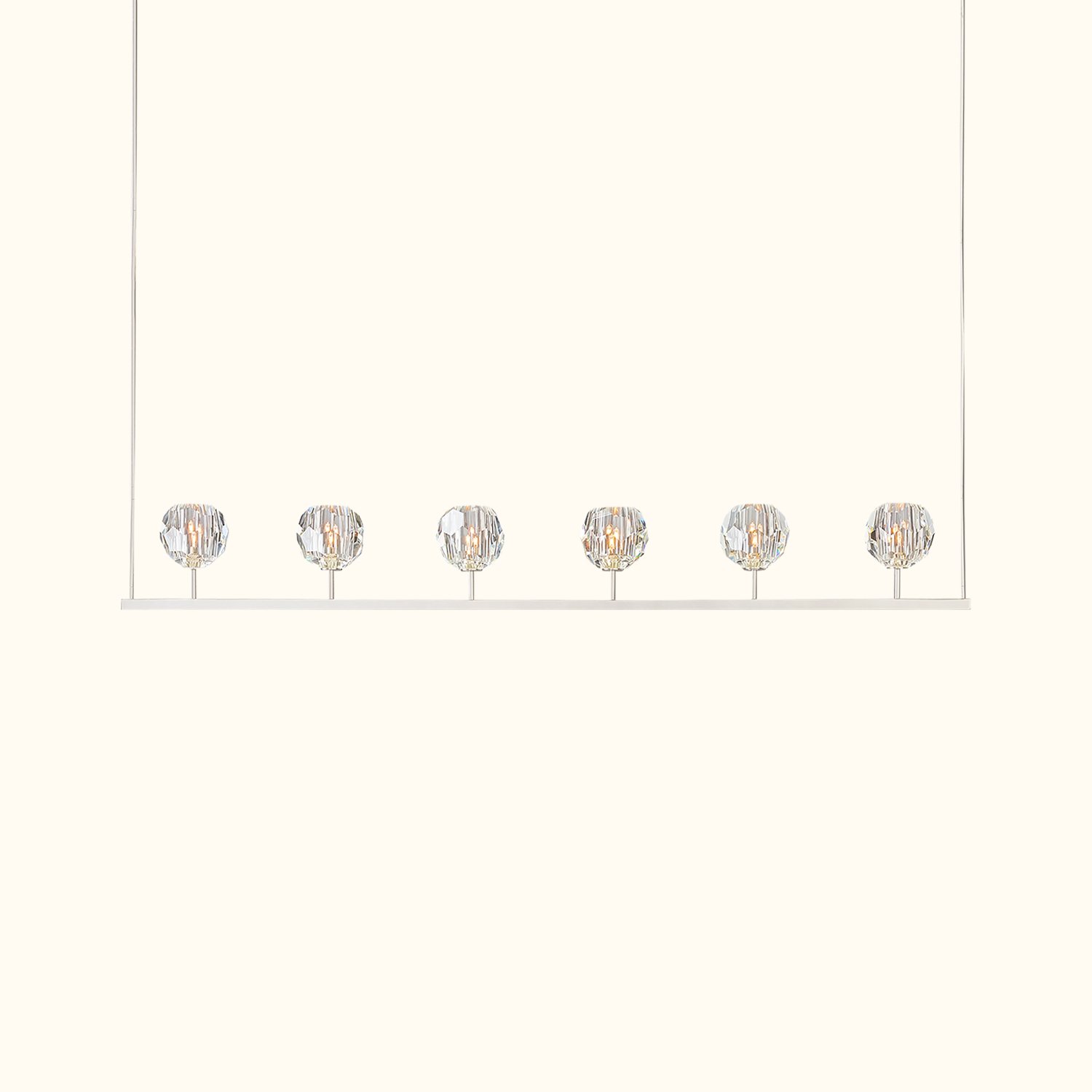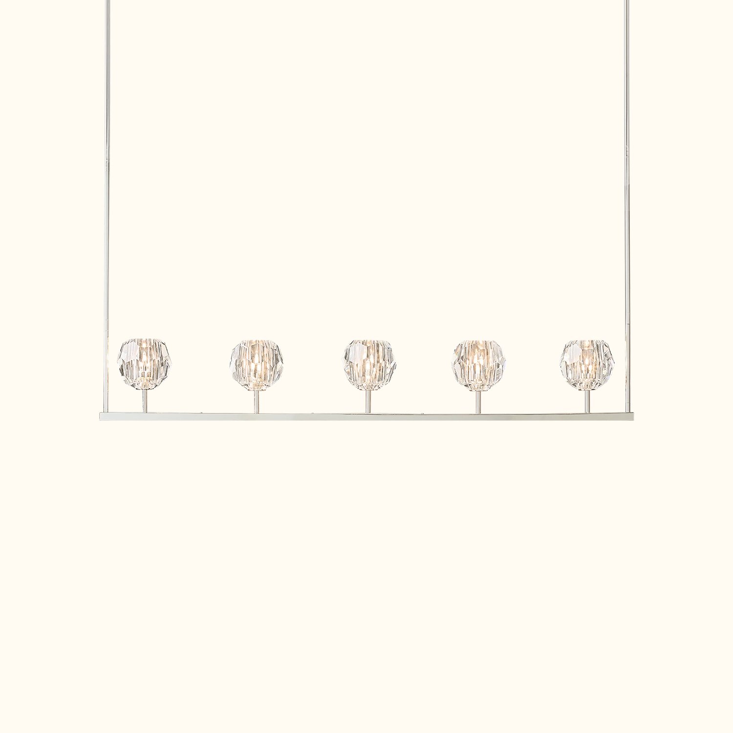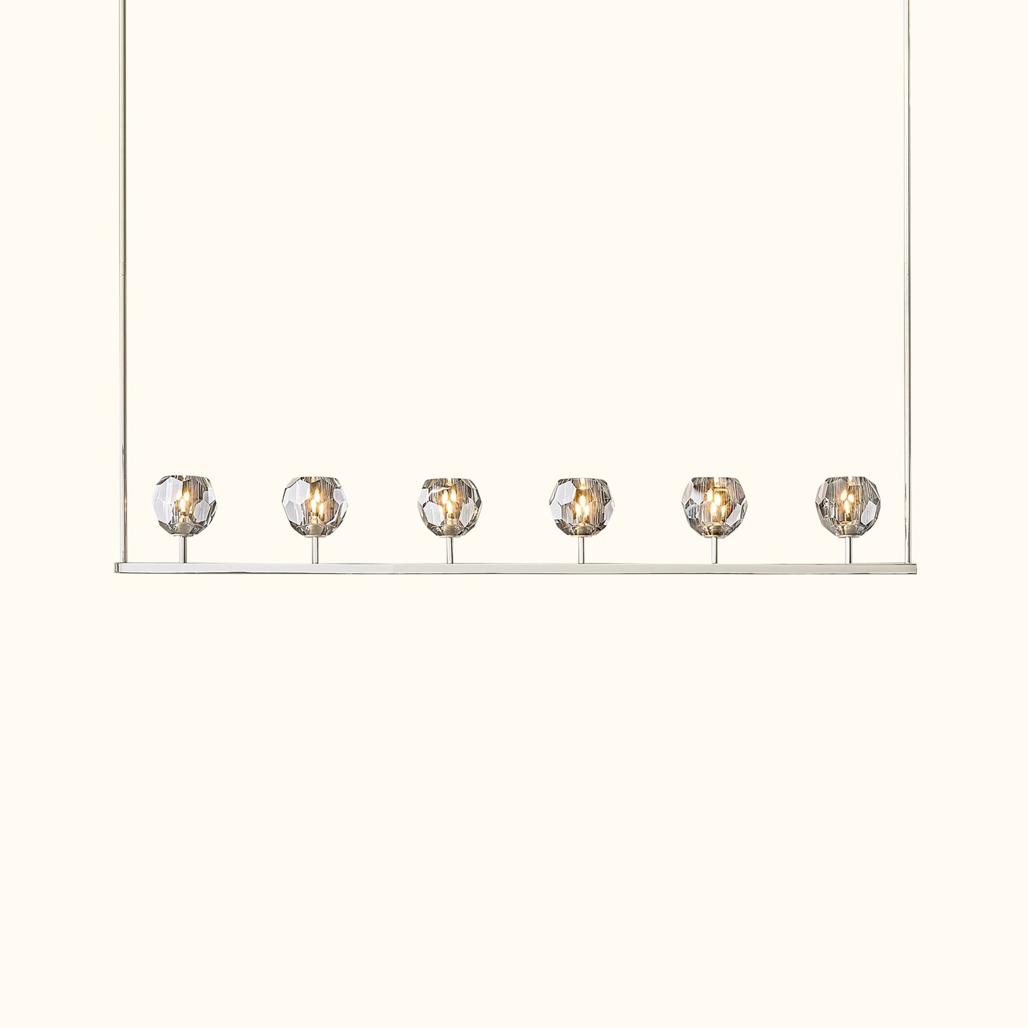 Crafted of solid brass and crystal glass, this sculptural fixture by lighting designer reflects his passion for luxurious materials and superior craftsmanship. Each finely faceted sphere is hand-ground and polished, evoking the minimalist spirit of 1960s design, to reflect and refract light.