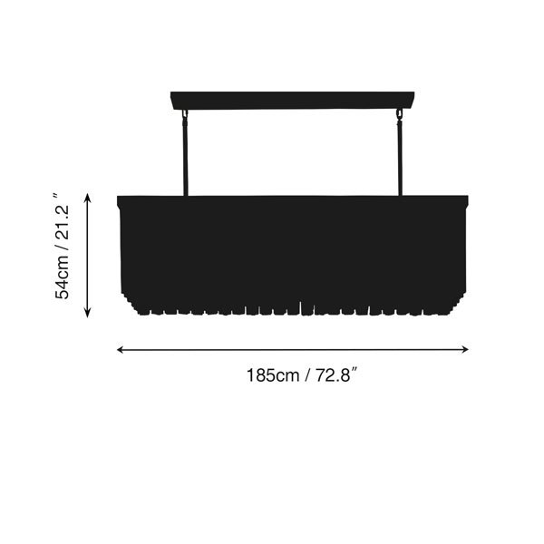 | Chandelier Body: | 137cm W x 49cm D x 54cm H / 185cm W x 49cm D x 54cm H |