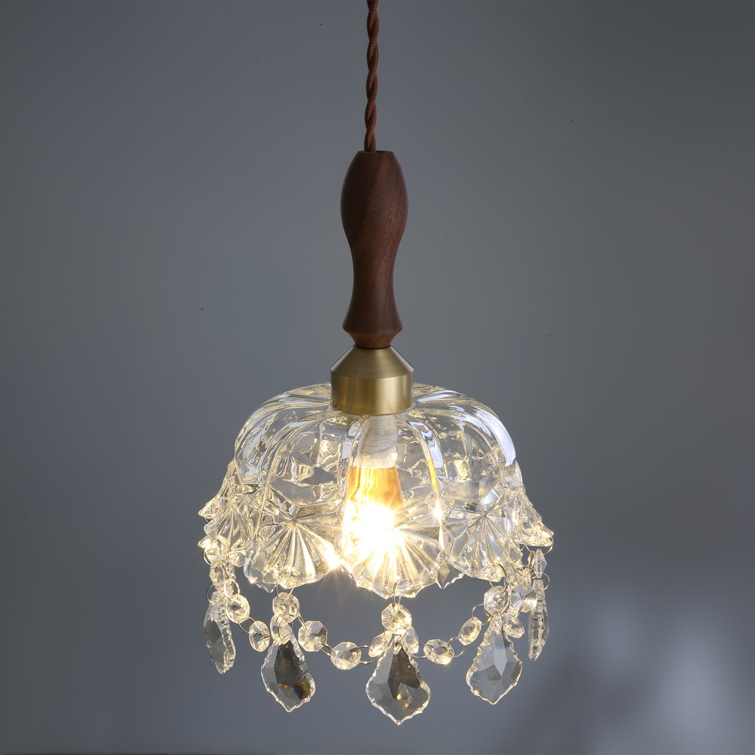 Experience the allure of timeless beauty with the Crystal Wooden Pendant Light. This exquisite fixture showcases a delicately patterned glass shade adorned with stunning crystal drops, creating a mesmerizing play of light and reflections. Perfect for adding a touch of elegance to any room, the Crystal Wooden Pendant Light is ideal for living rooms, dining areas, or bedrooms. Transform your space into a luxurious haven with this beautiful blend of vintage charm and contemporary sophistication. Illuminate your home with the grace and grandeur of the Crystal Wooden Pendant Light.