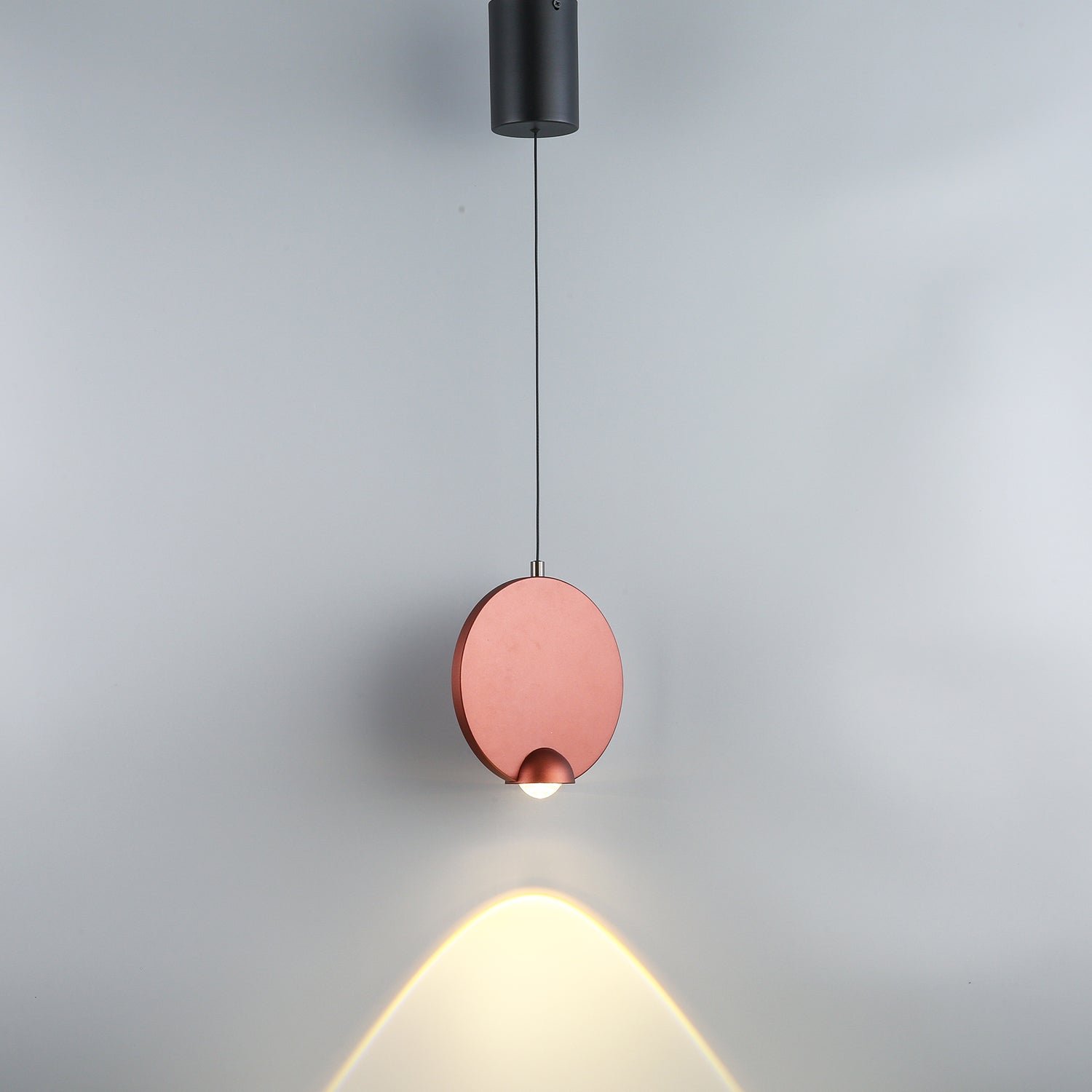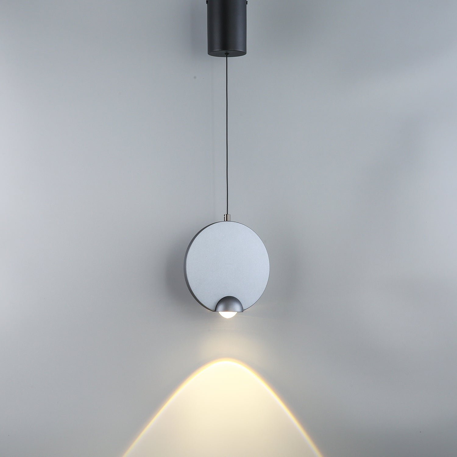 The Disc-Shaped Pendant Light with spotlight functionality is versatile for various settings. It can be used as a dining light, bedside light, or corner light. Its focused beam makes it highly functional.