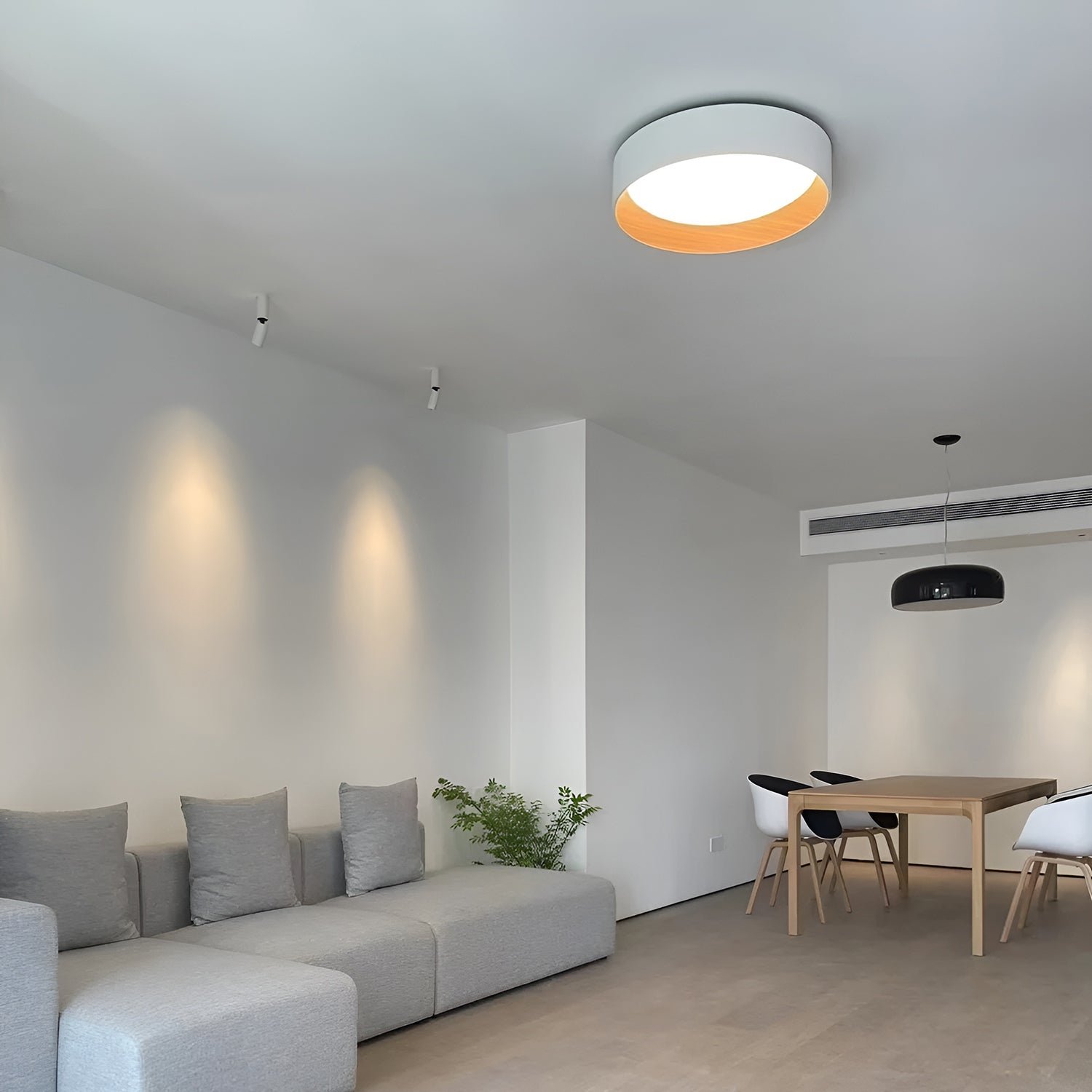 The Duo ceiling lamp exudes natural warmth through its simple, sculptural volumes. Inspired by sustainability and wellness, the DUO collection is designed specifically for spaces with lower ceilings where pendant lights are unsuitable. The inner surface of the shade is lined with oak veneer, while the outer shell is made of matte lacquered aluminum. The LED light source provides even illumination through a polycarbonate diffuser. The DUO ceiling lamp is available in two finishes.