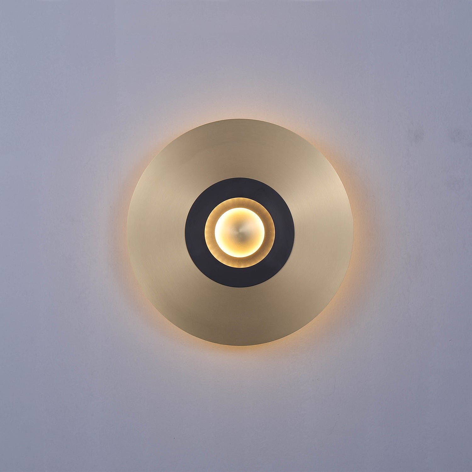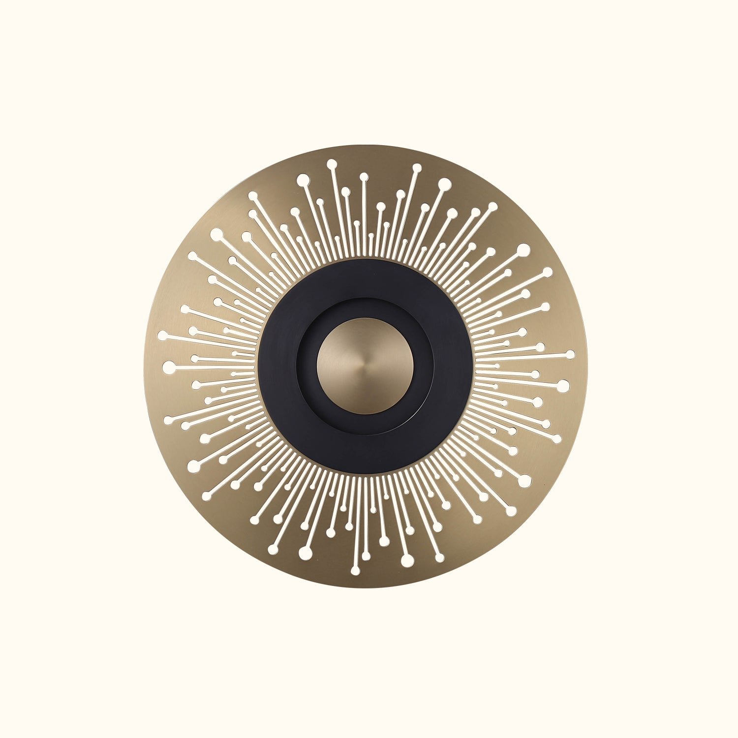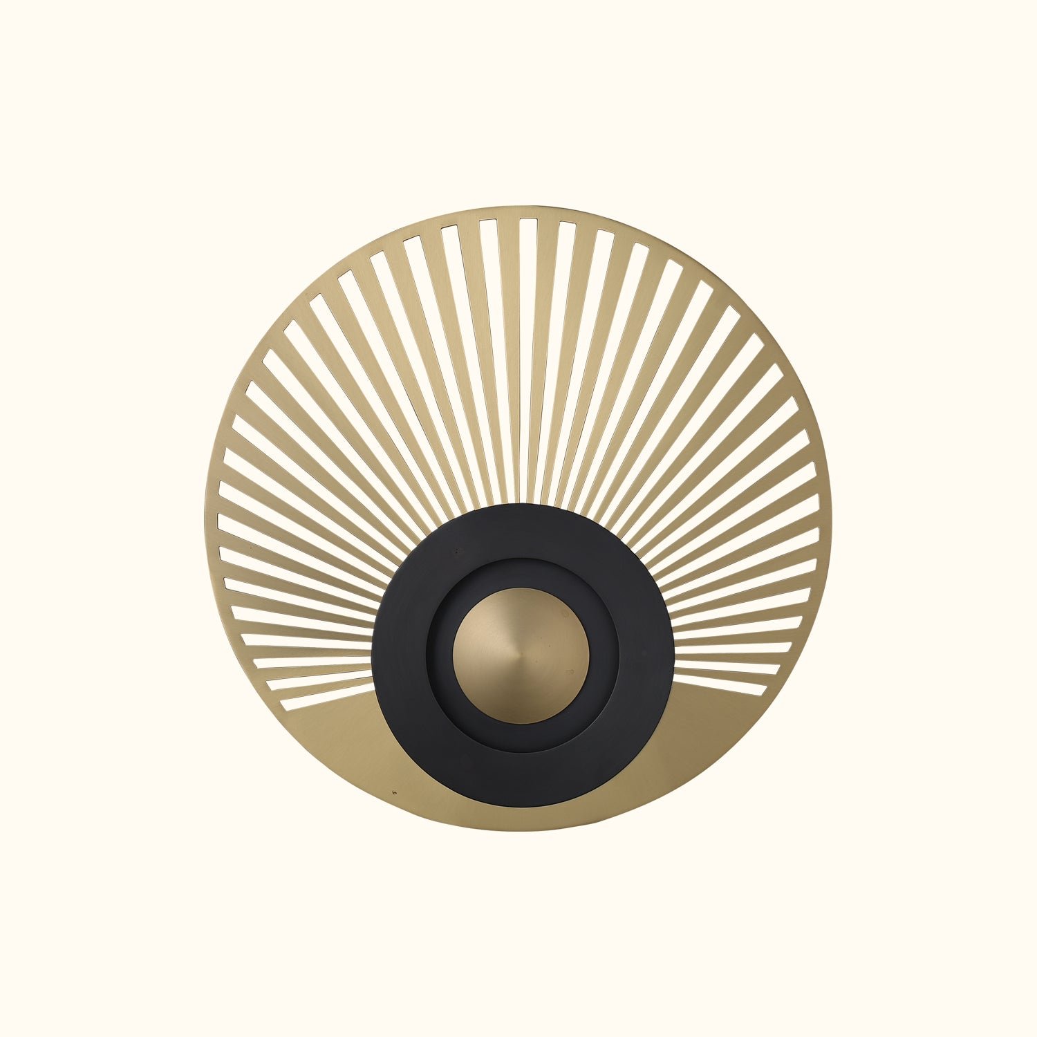 This wall light features an illuminated center and is crafted with either an intricate openwork design or a solid metal piece, giving the collection an Art Deco flair. It can create a range of effects, from semi-darkness to a patterned light source, allowing for versatile arrangements.