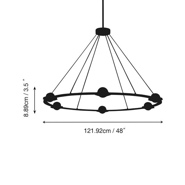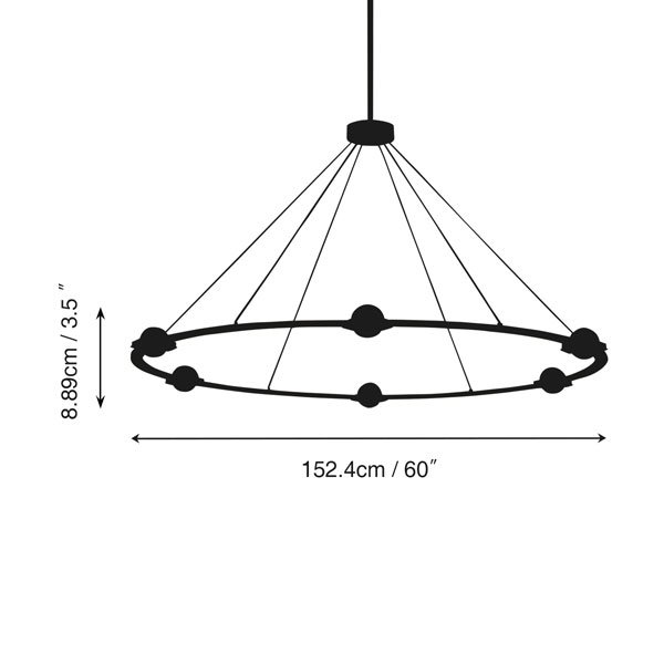 | Chandelier Body: | 36″ diam , 3½”H / 48″ diam , 3½”H / 60″ diam , 3½”H |