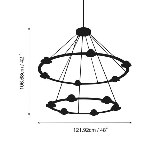 | Chandelier Body: | 48″ diam , 42″H / 60″ diam , 3½”H |