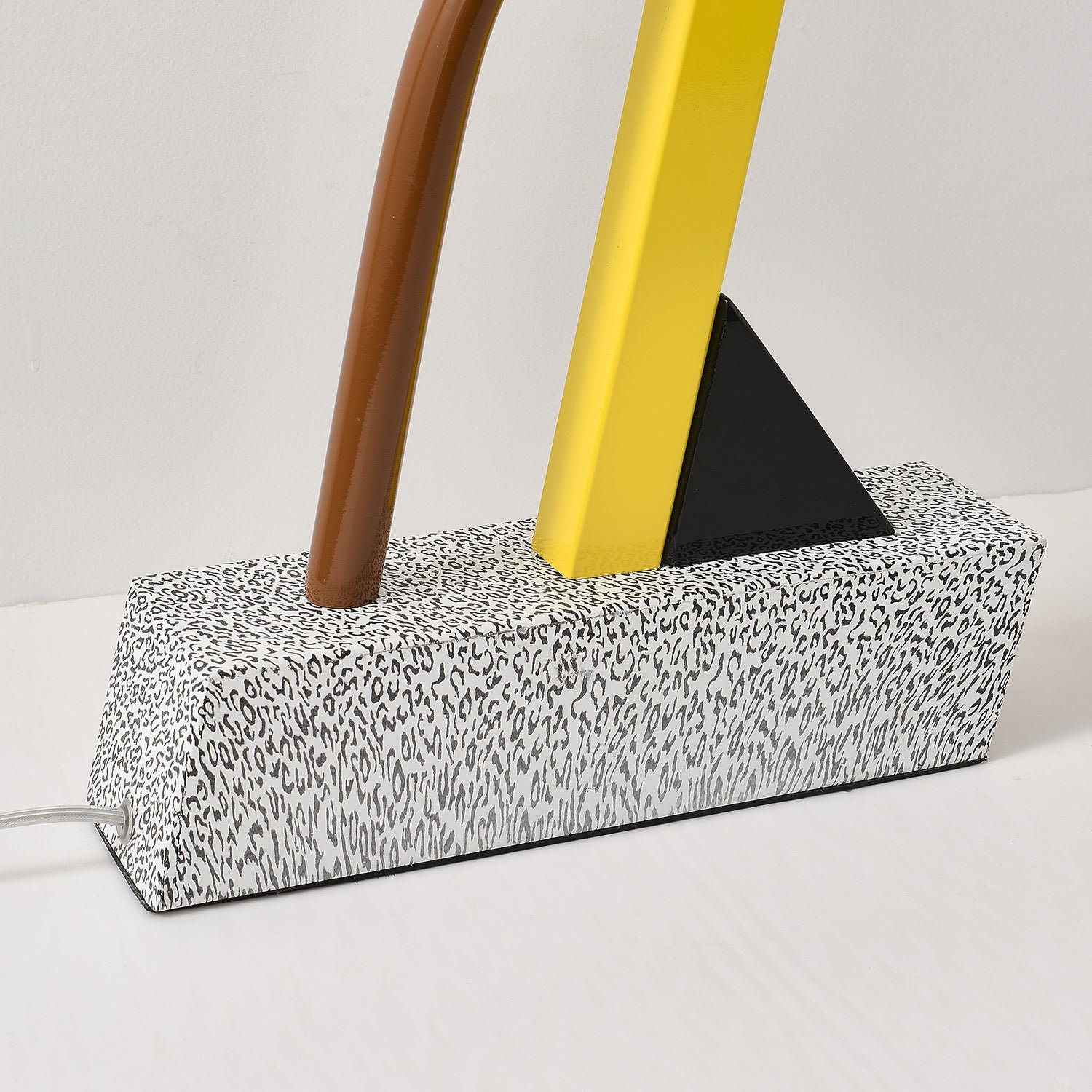 In 1981, a designer, often hailed as the godfather of “Italian cool,” created this vibrant and iconic post-modern table lamp.