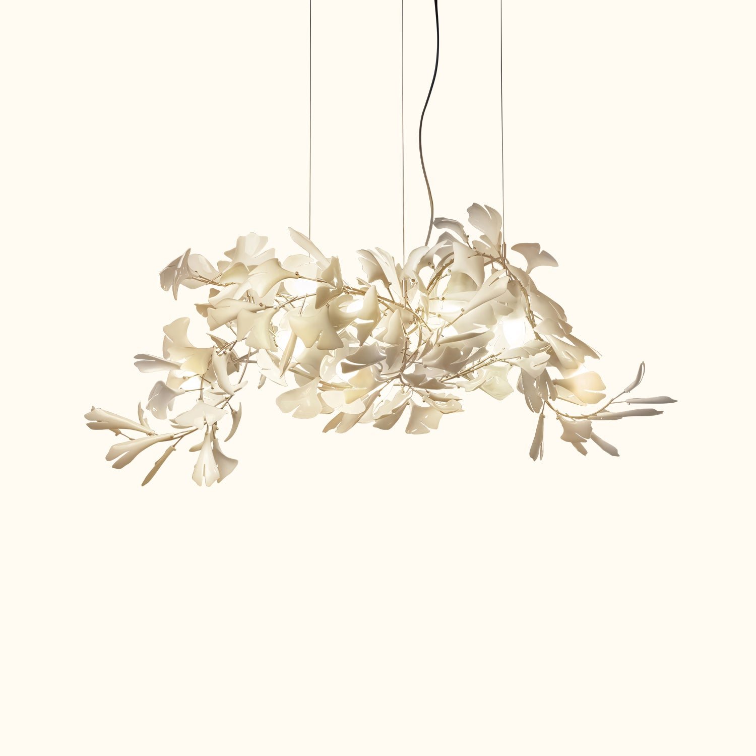 The C /141 is an impressive large-scale luxury handcrafted chandelier, resembling an illuminated sculpture that infuses light and energy into indoor spaces. Each handcrafted porcelain piece is designed to optimally capture and reflect light, creating an extraordinary warm ambiance. This is a stunning piece suitable for homes or other settings, intended to evoke the joy and tranquility inspired by nature.