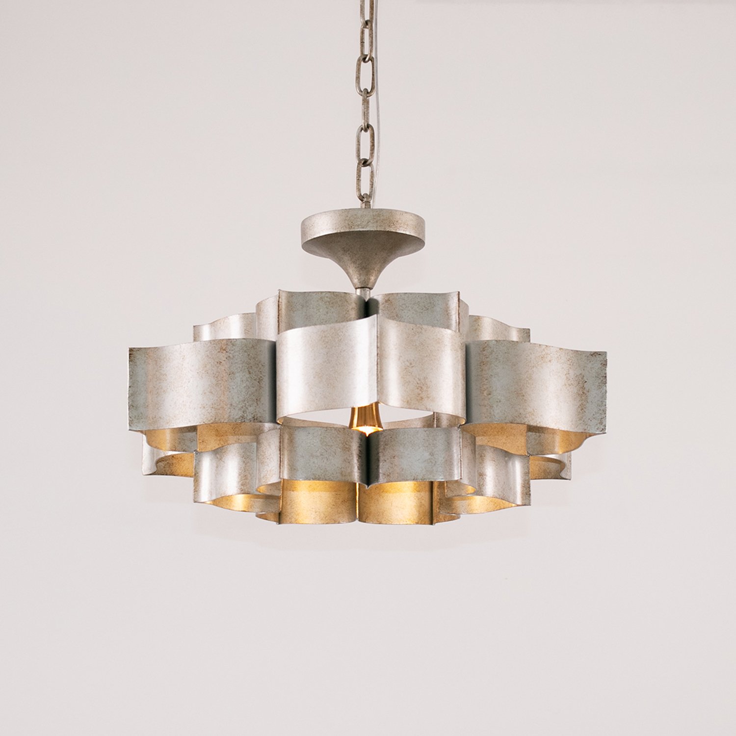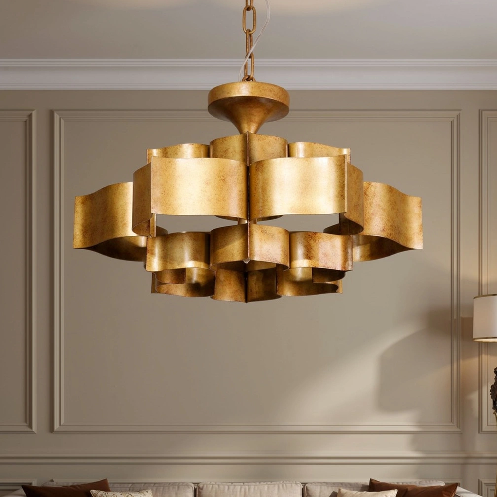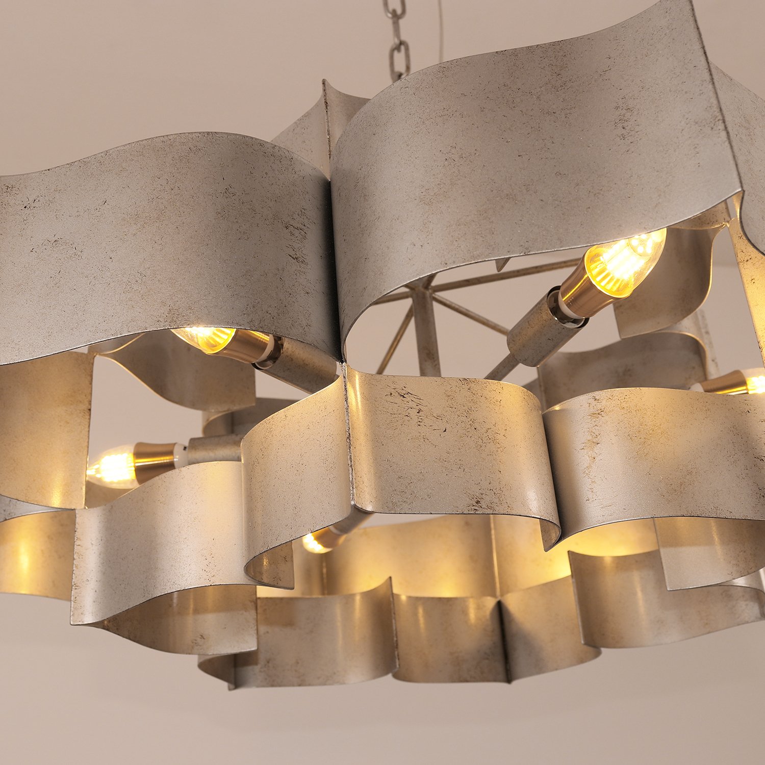 The Grand Lotus large silver chandelier has a solemn appearance and exquisite craftsmanship, featuring an antique silver leaf finish that is both elegant and sophisticated. This silver chandelier is meticulously crafted from wrought iron.