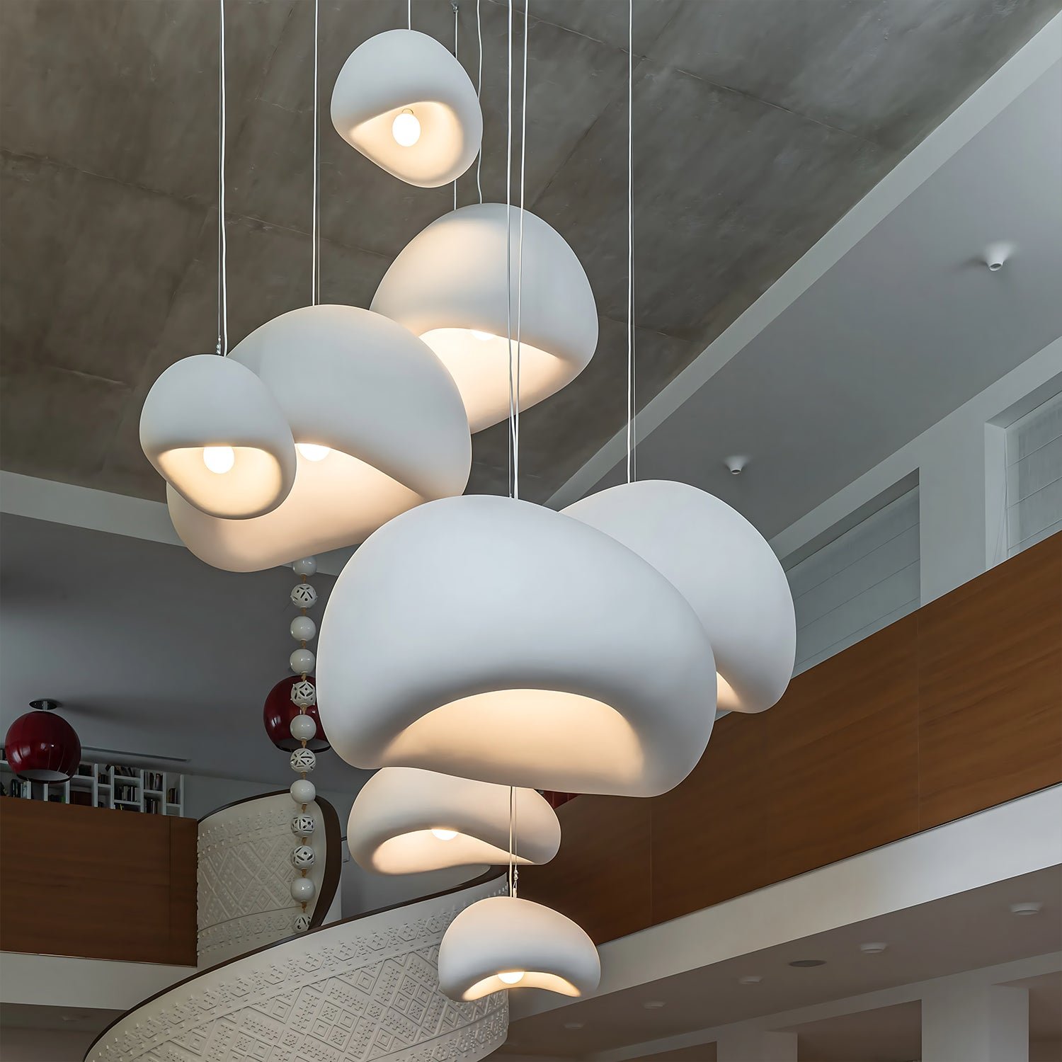 The indoor lights are handcrafted from gypsum, making this stylish gypsum pendant lamp a perfect solution for designing a light fixture for bedrooms, living rooms, kitchens, offices, cafes, or other spaces.