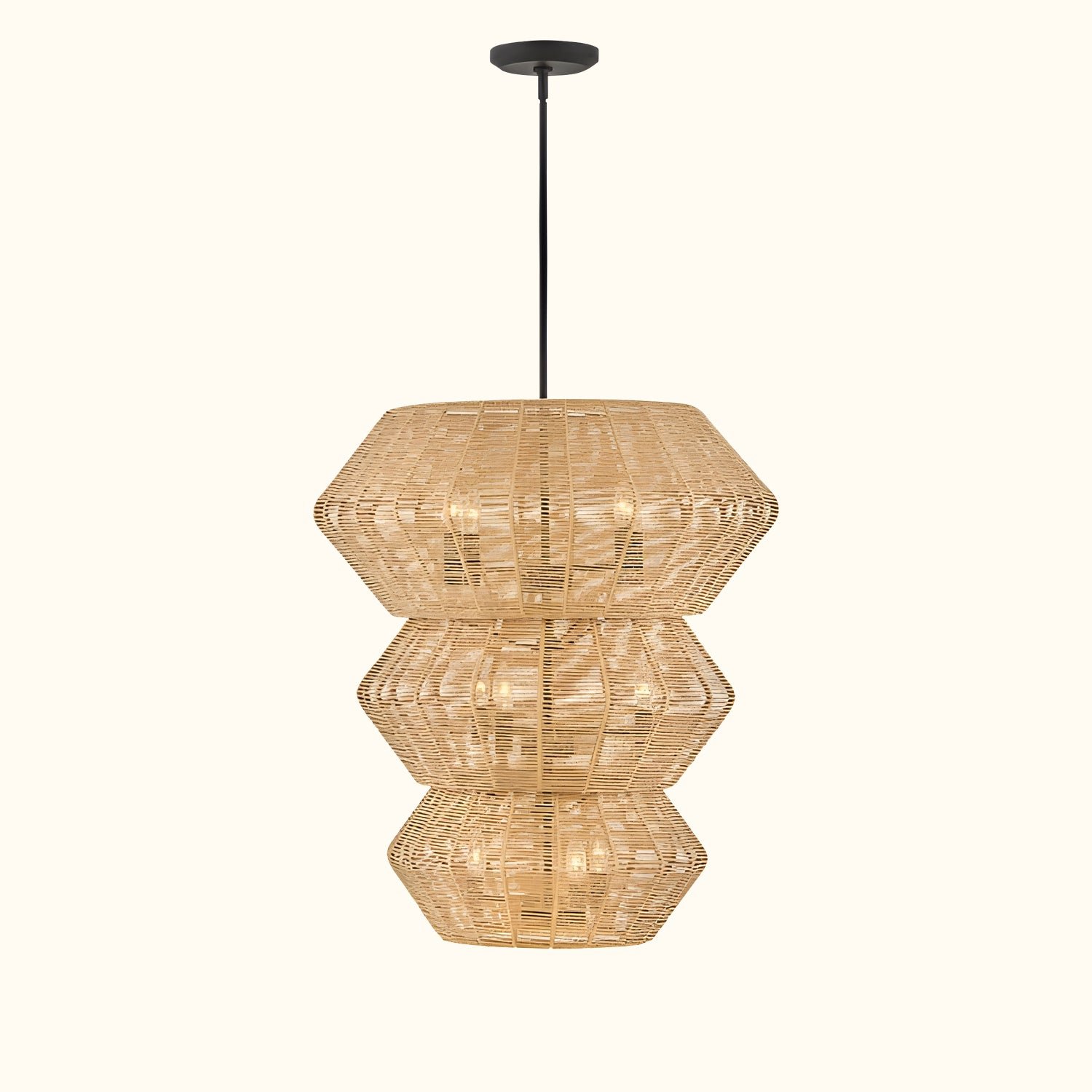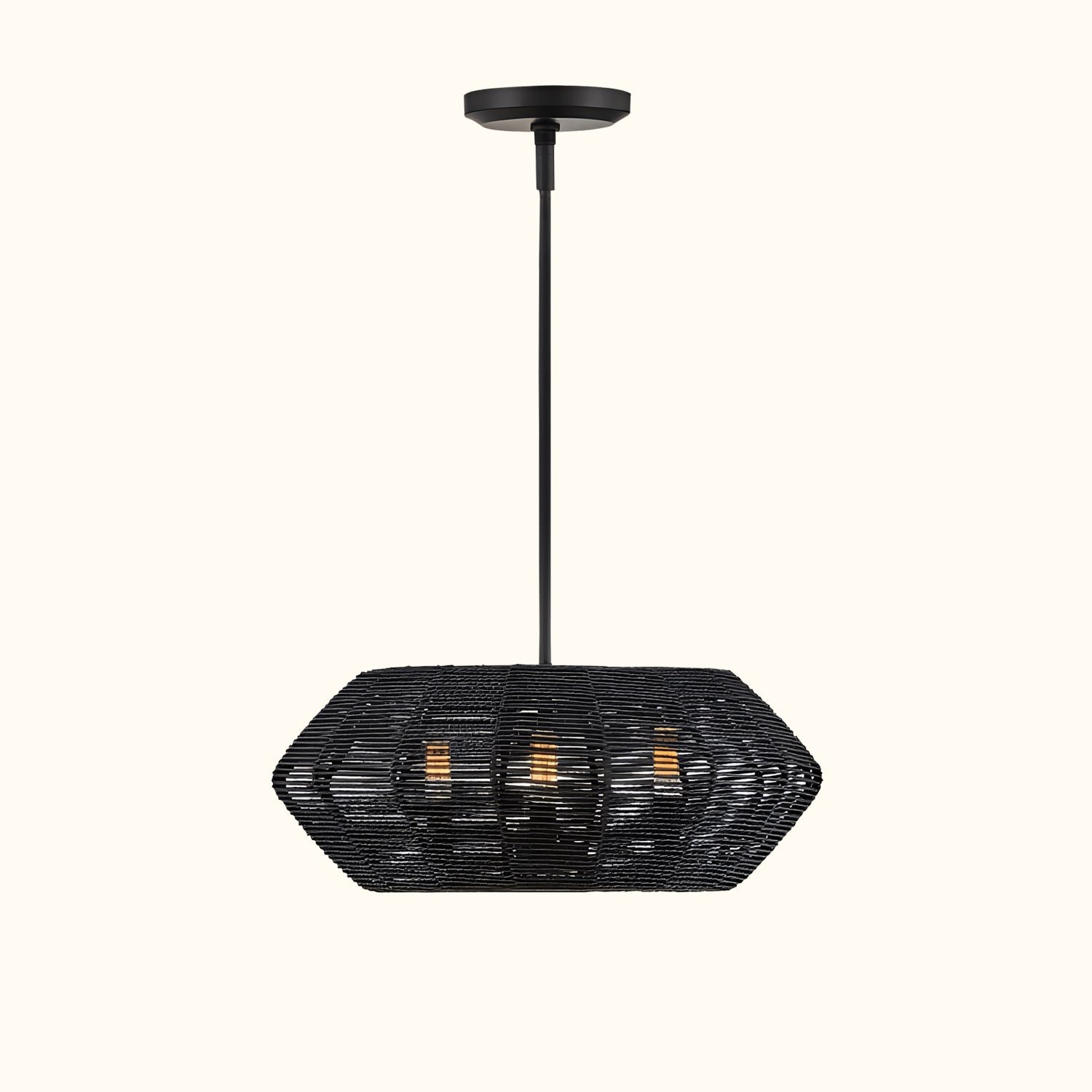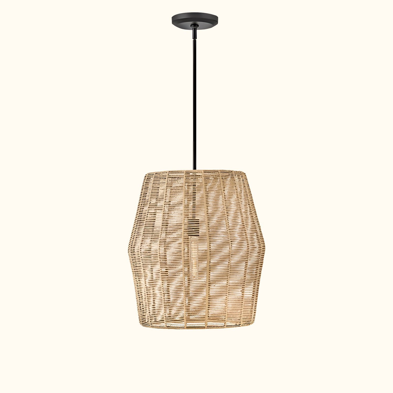 Luca’s seaside atmosphere exudes a touch of exotic charm. This bold pendant light features a sturdy woven drum shade and comes with a complete finished light string, providing ample practical lighting and a variety of finish options.