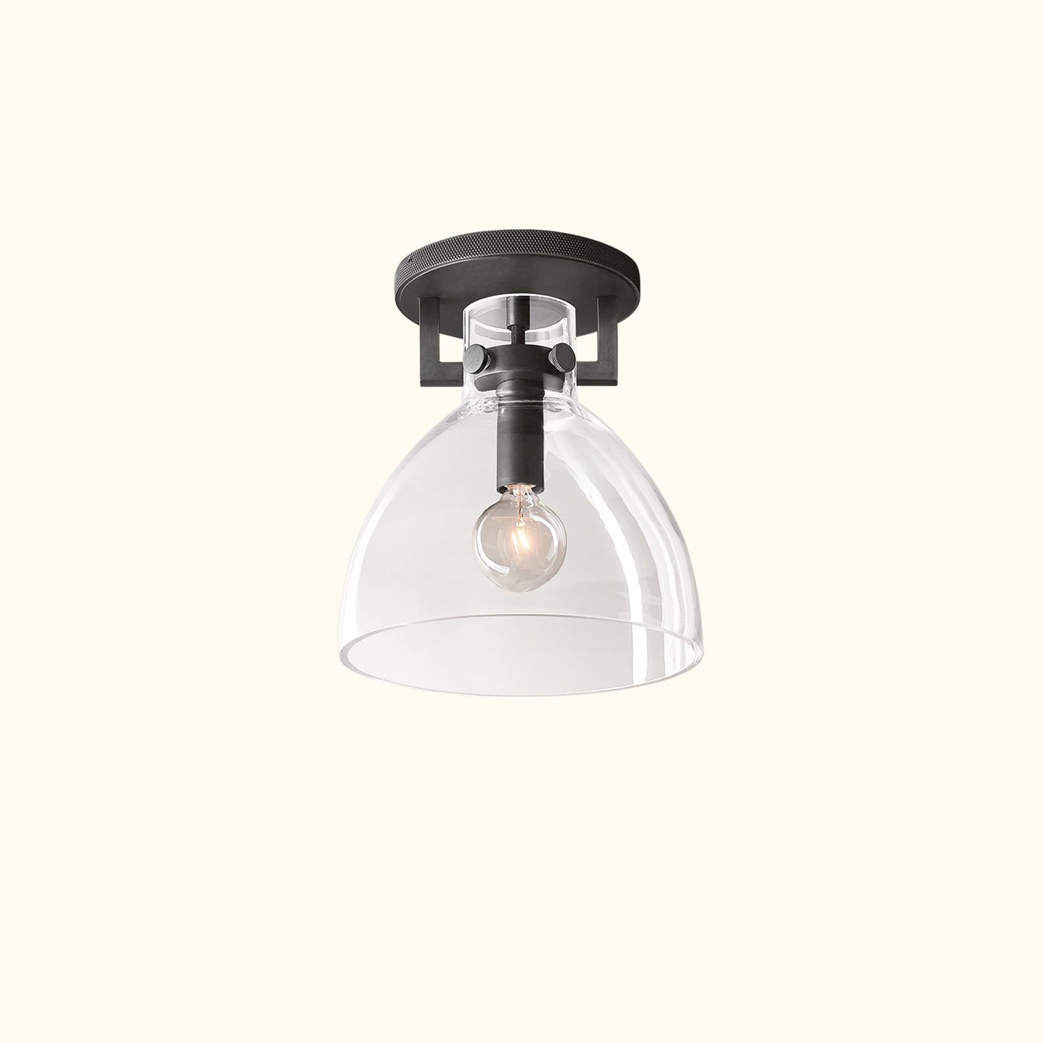 Our machinist recessed lampshade is a study of positive and negative space, density and openness, strength and fragility—a reflection on yin and yang. The geometric frame is crafted from solid metal, showcasing its industrial design inspiration. In striking contrast, the transparent glass border nearly disappears, echoing the shape of the lampshade. Embedded within the lampshade is an Edison bulb that emits a dazzling glow.