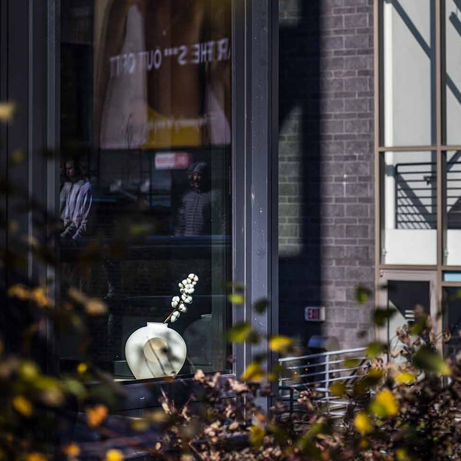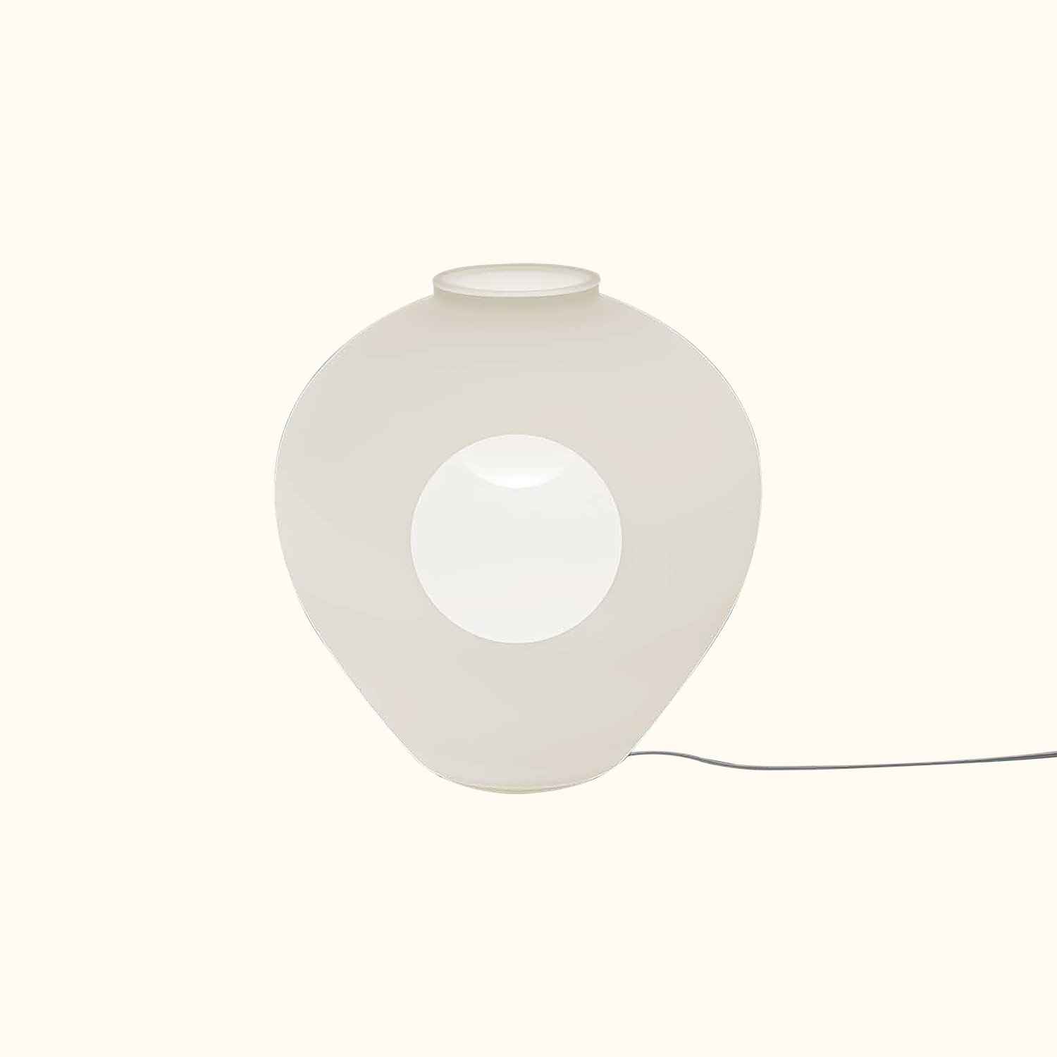 The object is a poetic and unexpected creation. The opening interrupts the large luminous body, creating a magical visual effect and unique light at the center. The hollow upper part conceals a small vase, where branches can be placed to create an elegant composition.