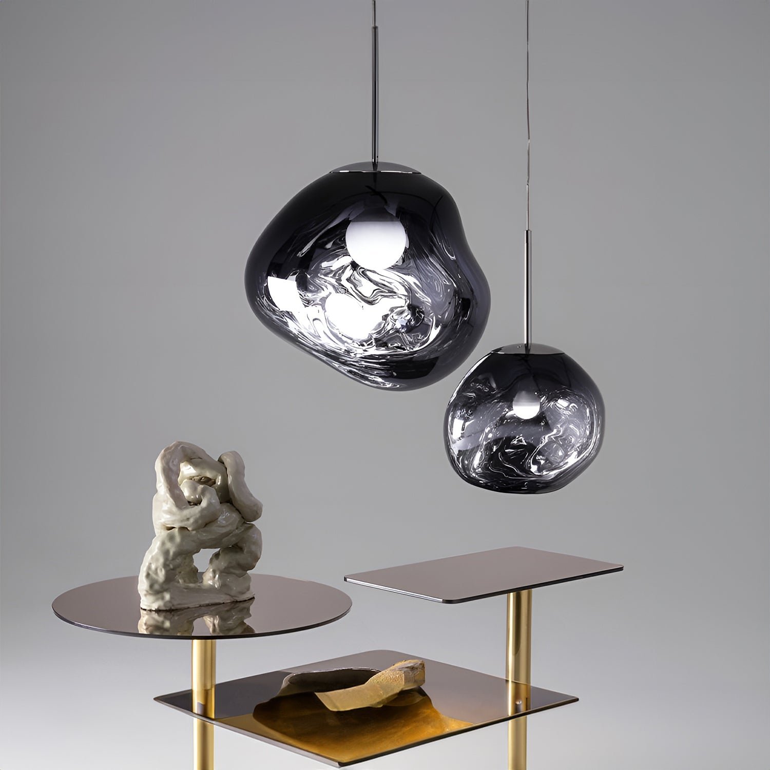 Melt was created in collaboration with a Swedish design group. They are dedicated to creating lighting pieces that are imperfect, organic, and natural. Melt evokes images of molten glass, the interiors of melting glaciers, or the depths of outer space.