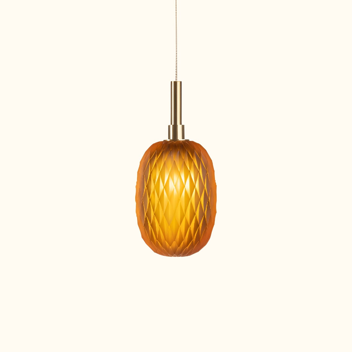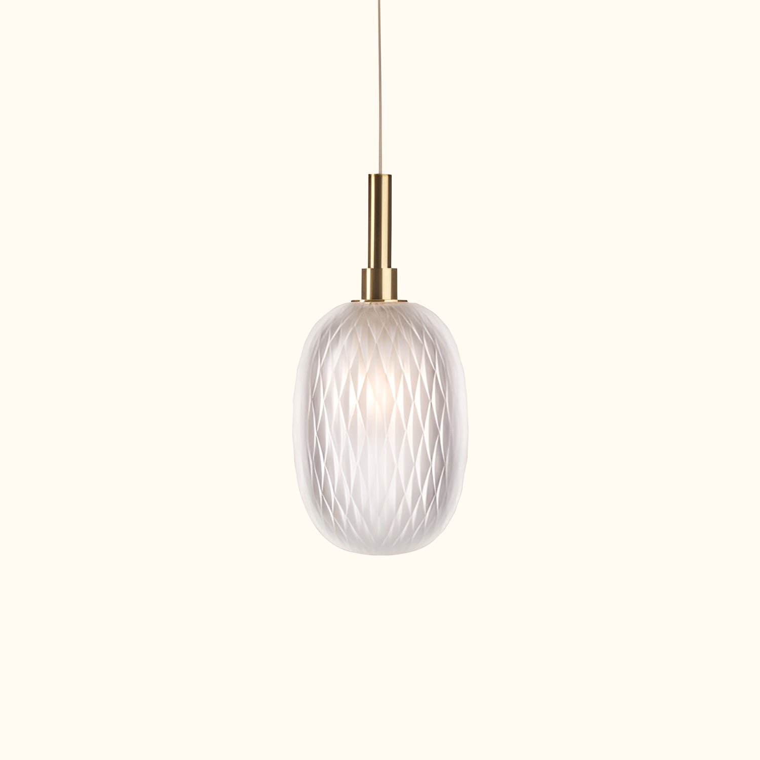 METAMORPHOSIS SMALL is a hand-blown and hand-cut glass pendant lamp.