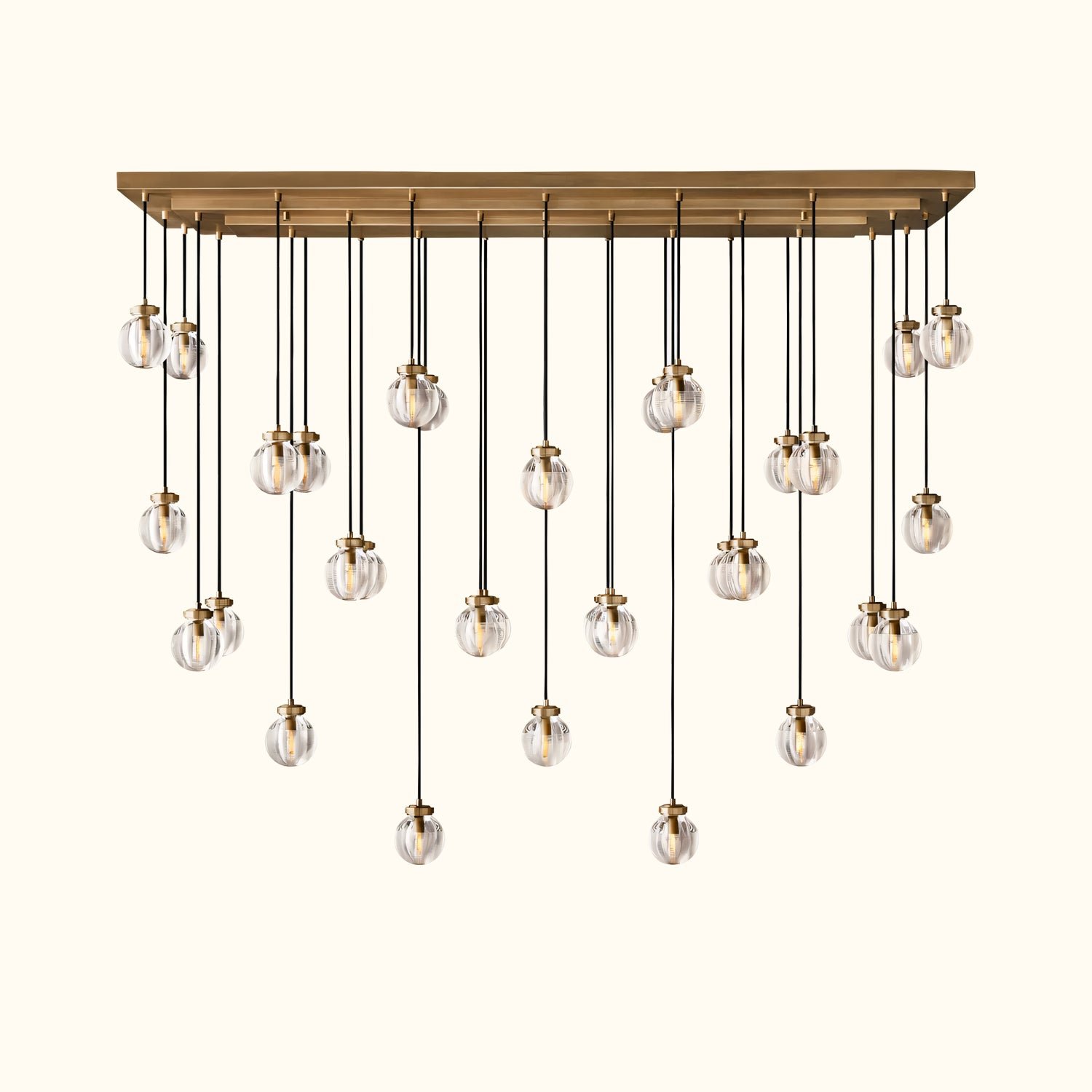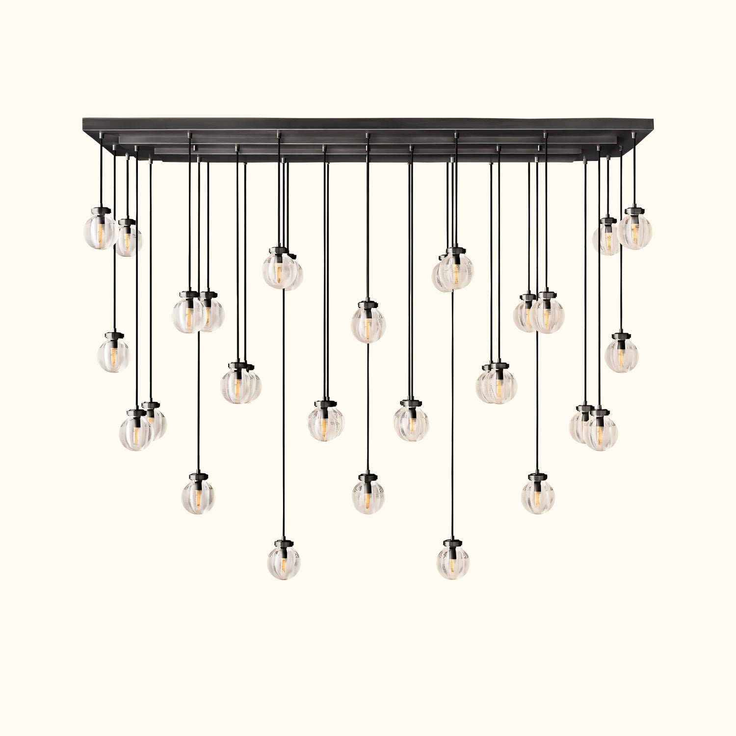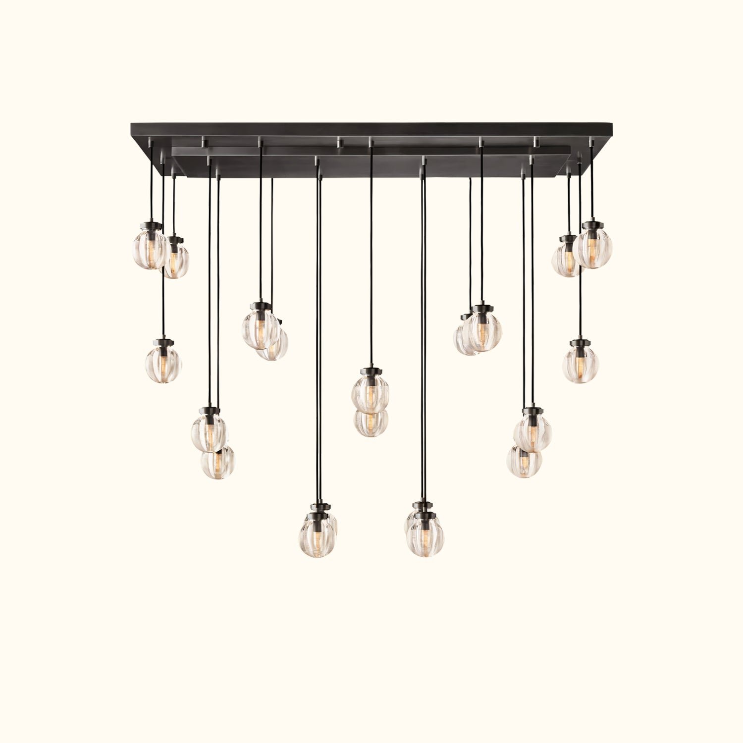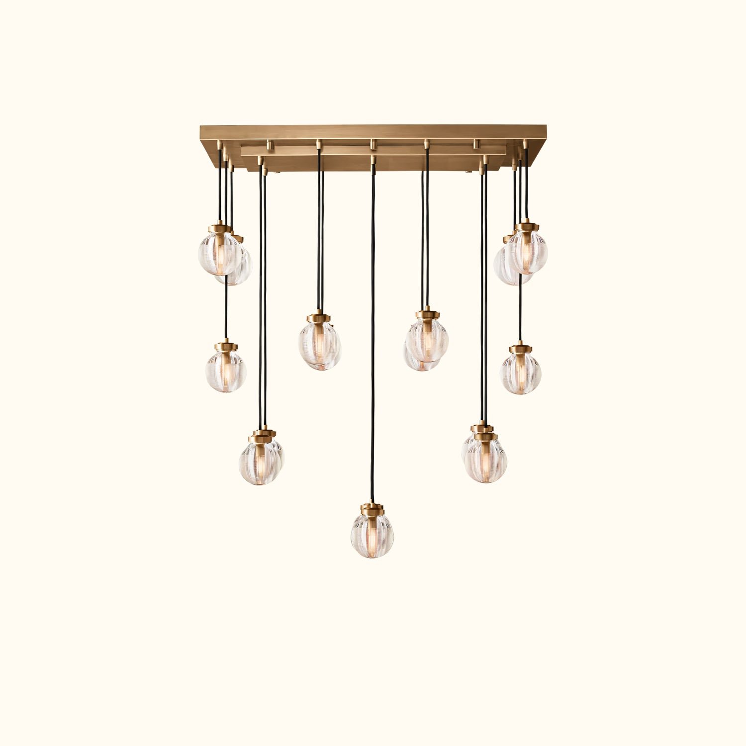 Glass pearls are carved with intricate grooves that create shimmering layers of light, bringing lustrous, oceanic beauty to this collection. Influenced by the inciso technique developed by Venetian glass makers, the texture both filters the light and invites contemplation, giving these pieces an ethereal yet intimate quality.