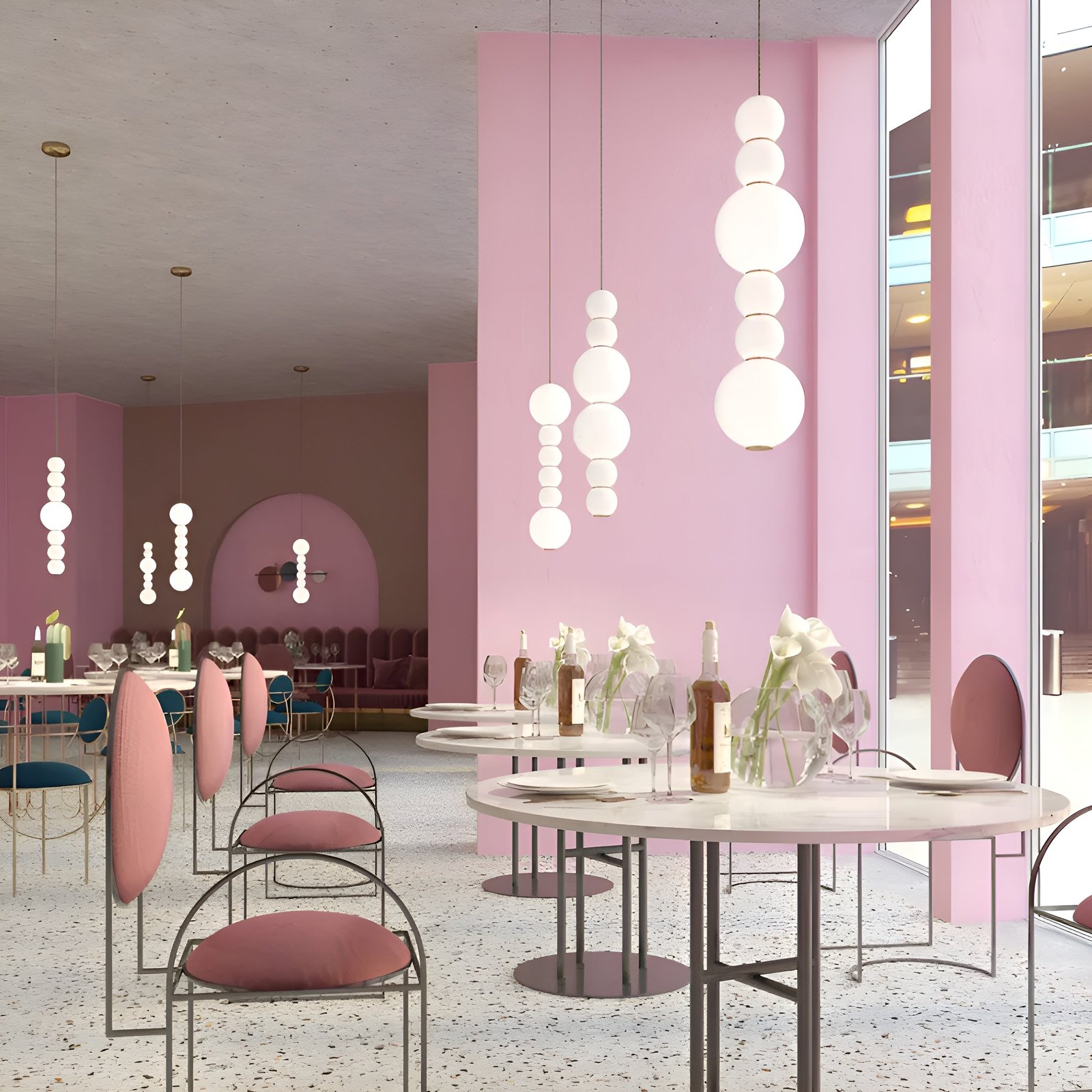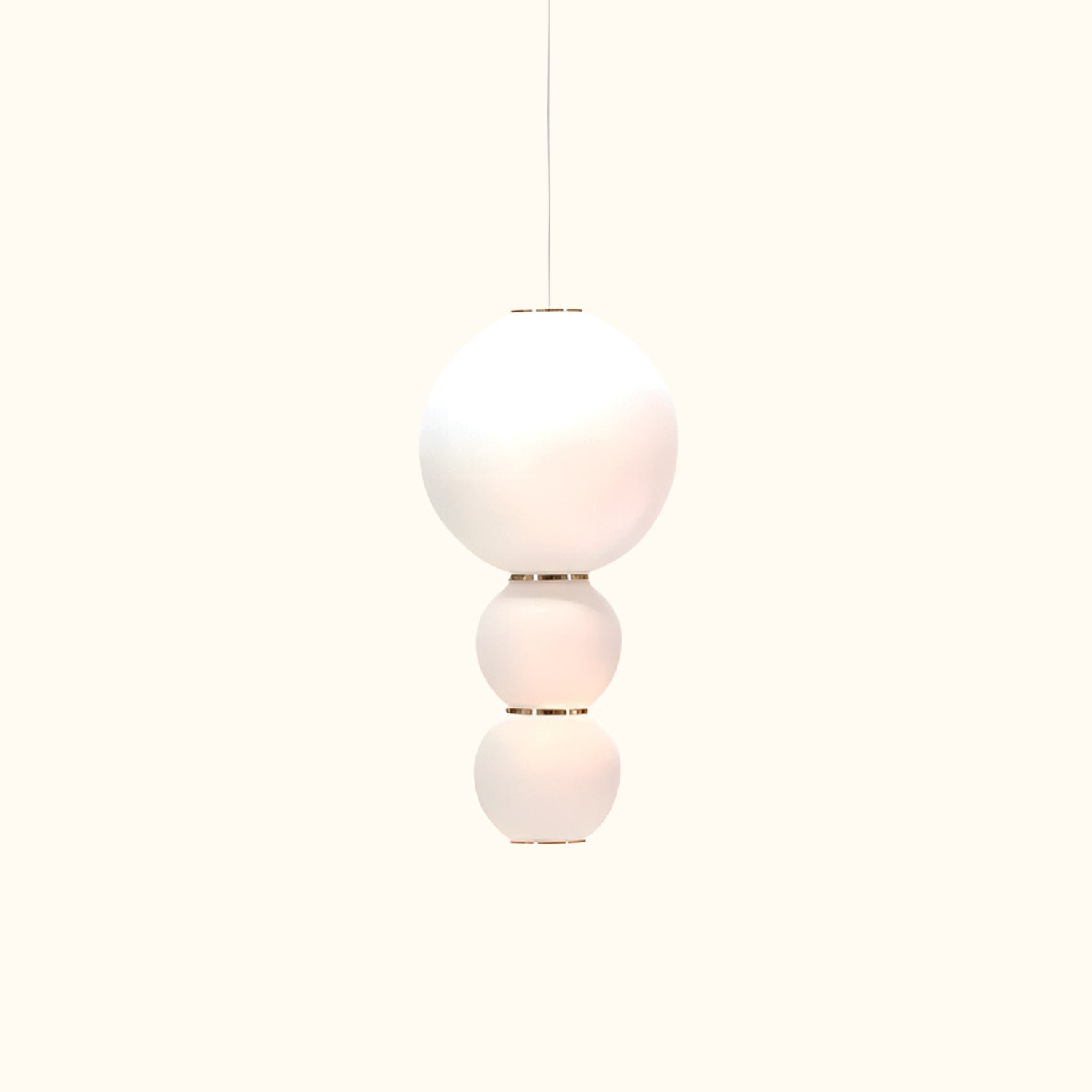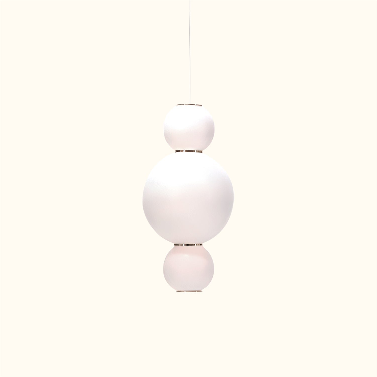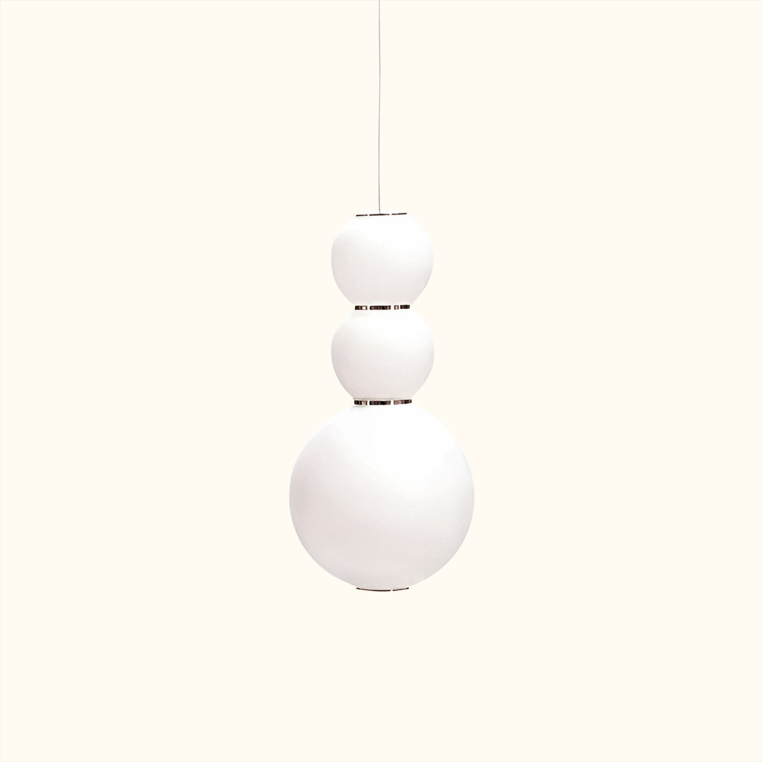 The PEARLS chandelier is timeless, elegant, and offers countless possibilities. By combining two different sizes of opal glass spheres, various arrangements and shapes can be achieved. If multiple versions of PEARLS are placed in a room, the decor will always remain consistent, neither excessive nor boring. PEARLS can be arranged in any grouping as desired, providing perfect lighting for living rooms, above bars, staircases, or atriums. It is absolutely eye-catching.