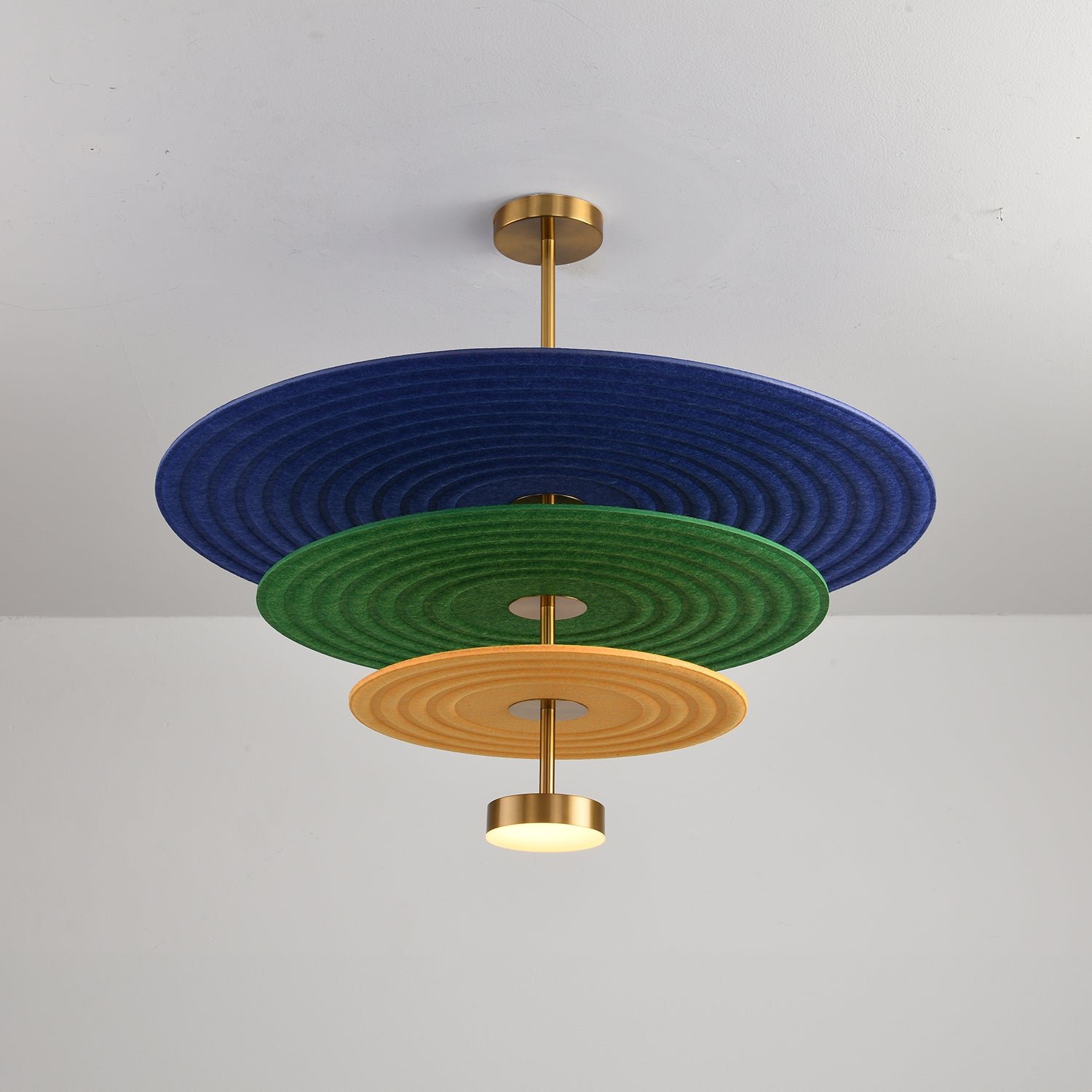 Penta FEEL is a versatile modular pendant lamp featuring a metal structure. The discs, crafted from sound-absorbing fabric, expertly manage both light and sound waves, making it an ideal choice for prestigious meeting rooms. The lamp’s configuration is fully customizable, allowing you to select the size of the rod and discs—available in small, medium, and large sizes—with options for one, two, or three discs. You can also mix and match colors to create a modern lamp that suits any setting.