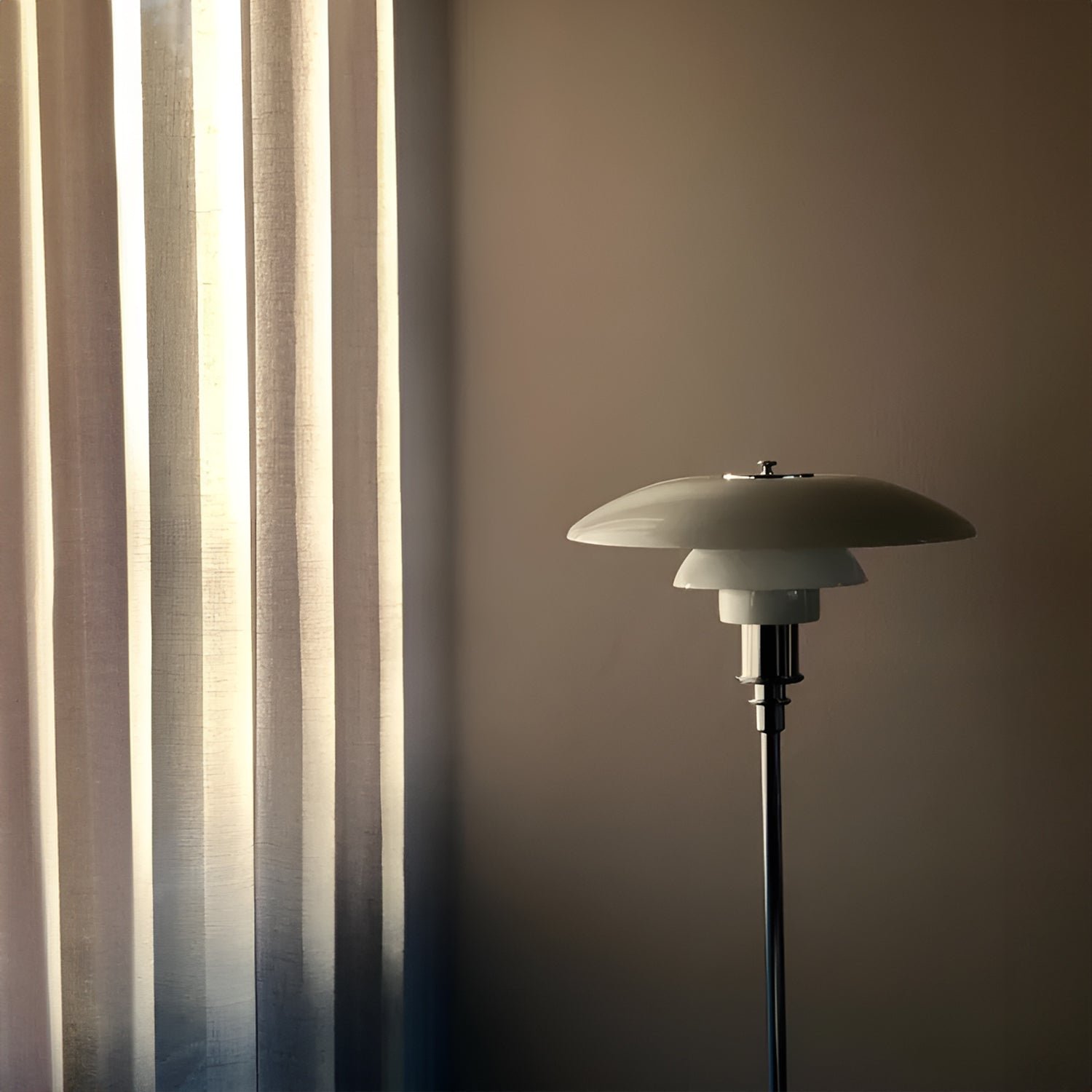 Illuminate your home with the PH 3½-2½ Floor Lamp, a floor lamp that embodies both elegance and simplicity. Its sleek chrome-plated stem and hand-blown opal glass shades deliver a soft, diffused light that creates a warm and inviting atmosphere in any room. Perfect for placing beside your favorite reading chair or as a statement piece in the living room, PH 3½-2½ Floor Lamp offers timeless style with modern functionality. This floor lamp is not just a source of light, but a touch of refined luxury for your space.