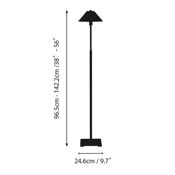 Our lighting fixtures are inspired by geometry, perfectly combining a sturdy square base with a pyramid-shaped lampshade. The telescopic design allows adjustable height, providing versatility for various settings. The top is fitted with a metal lampshade to help focus the light.