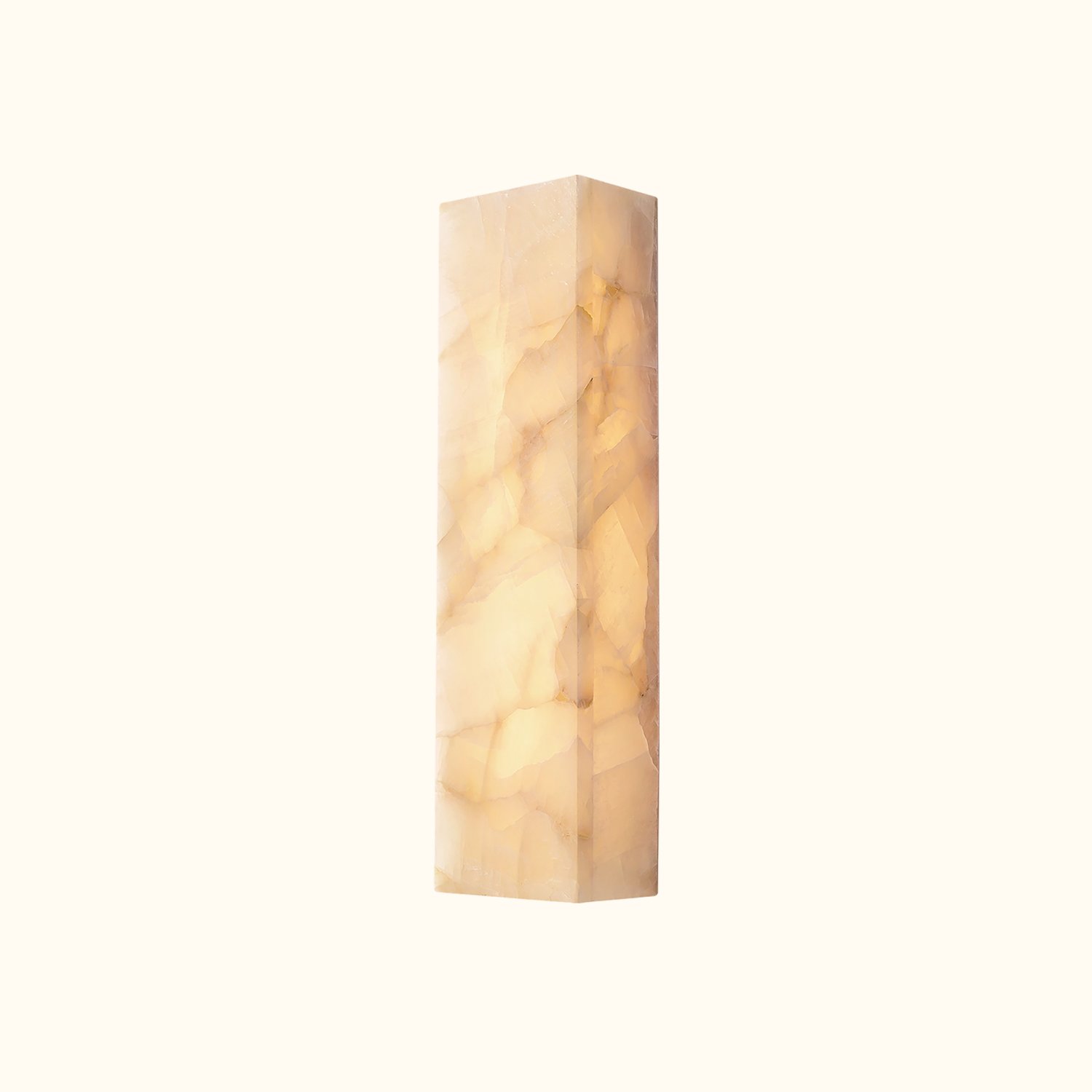 The Rivage series features a minimalistic design with stunning effects, celebrating the beauty of calcite, a translucent material that emits a warm and natural glow. The polished stone slabs are expertly joined to create a smooth, continuous surface, while the subtle internal light enhances the natural colors and textures. Each fixture is unique.