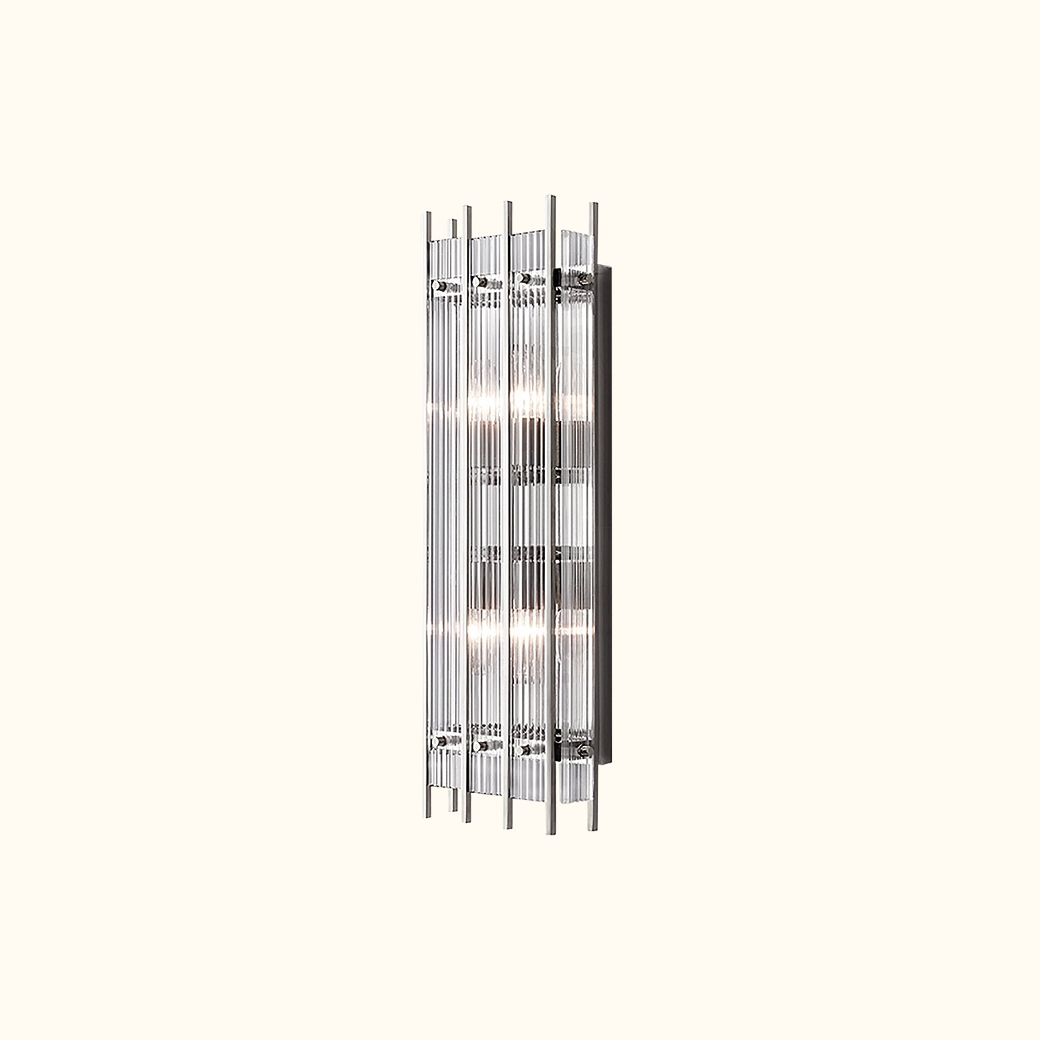 | Material: | Crafted of handmade fluted glass panels on a steel frame |