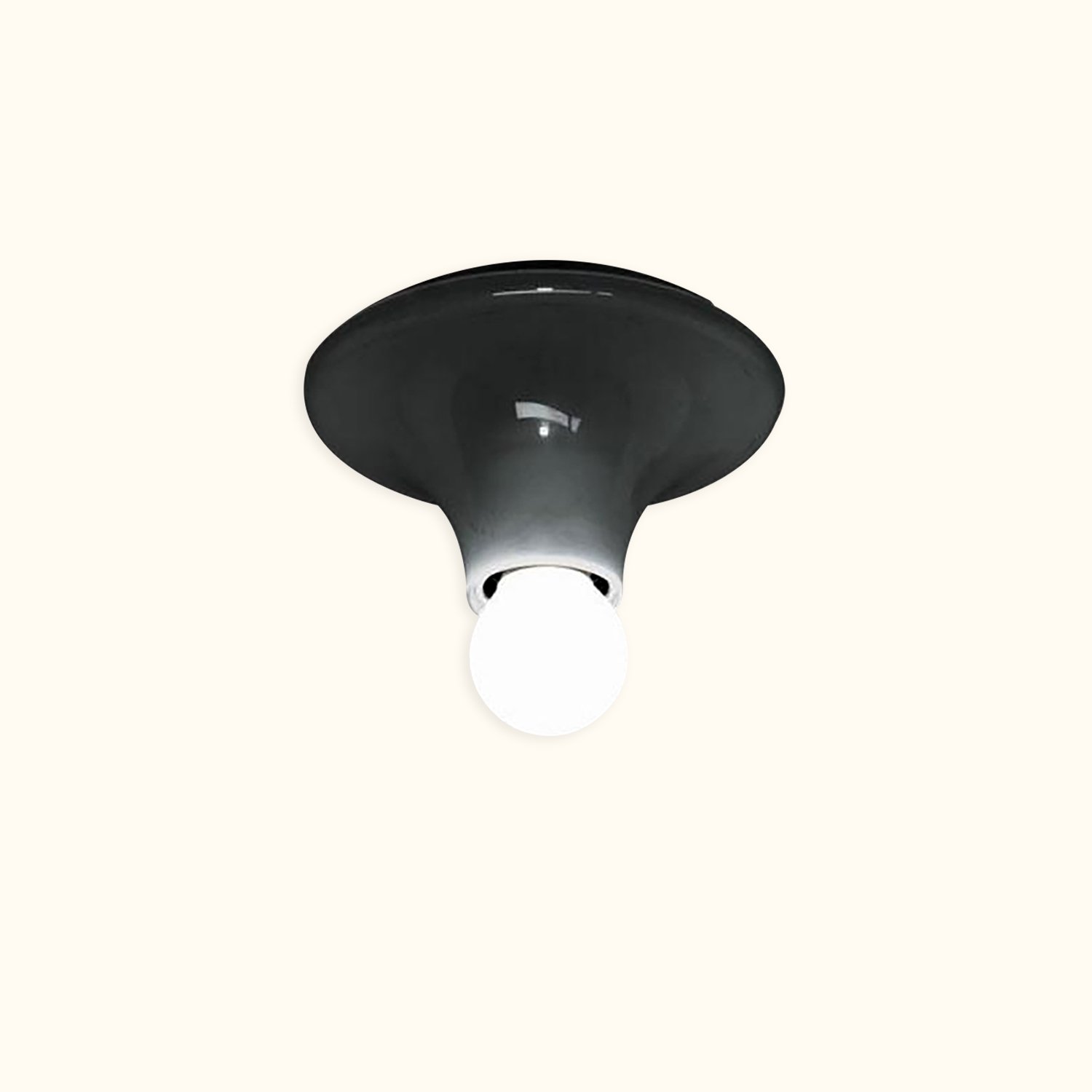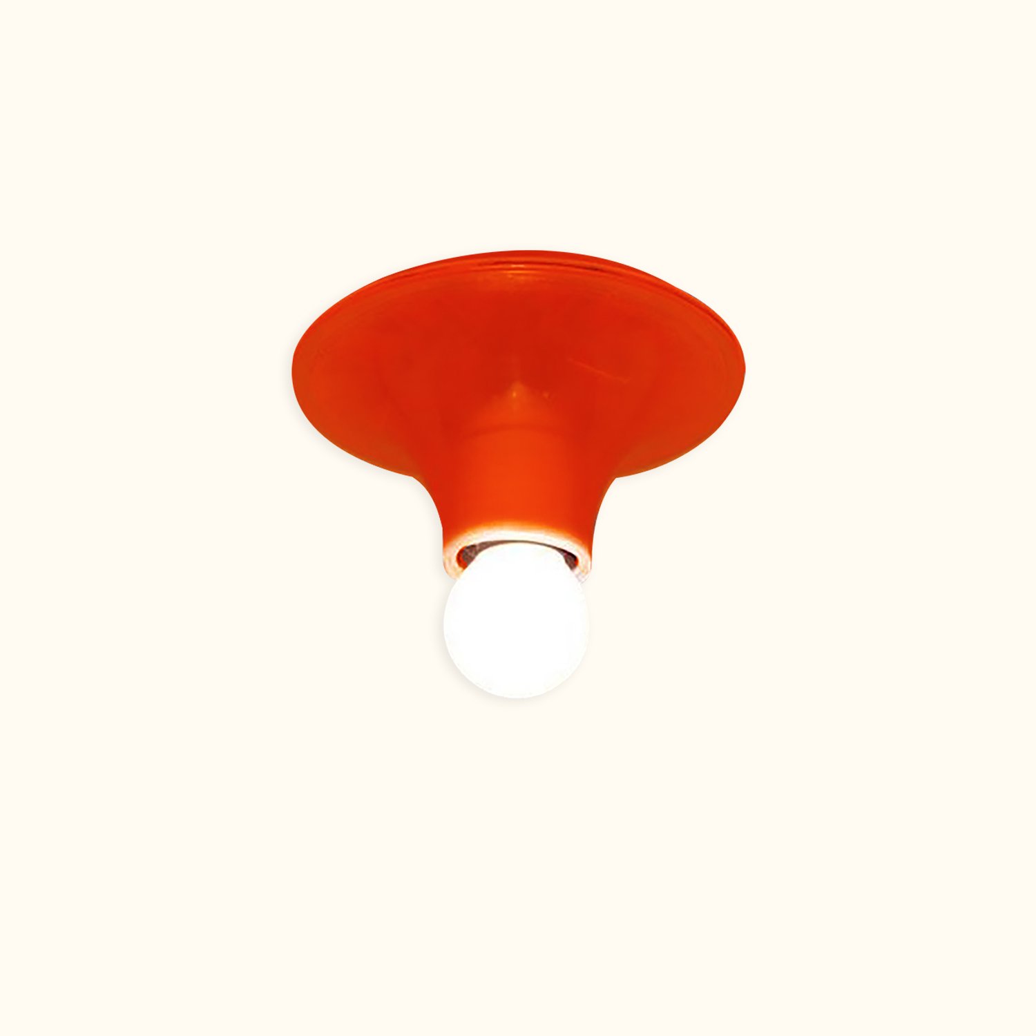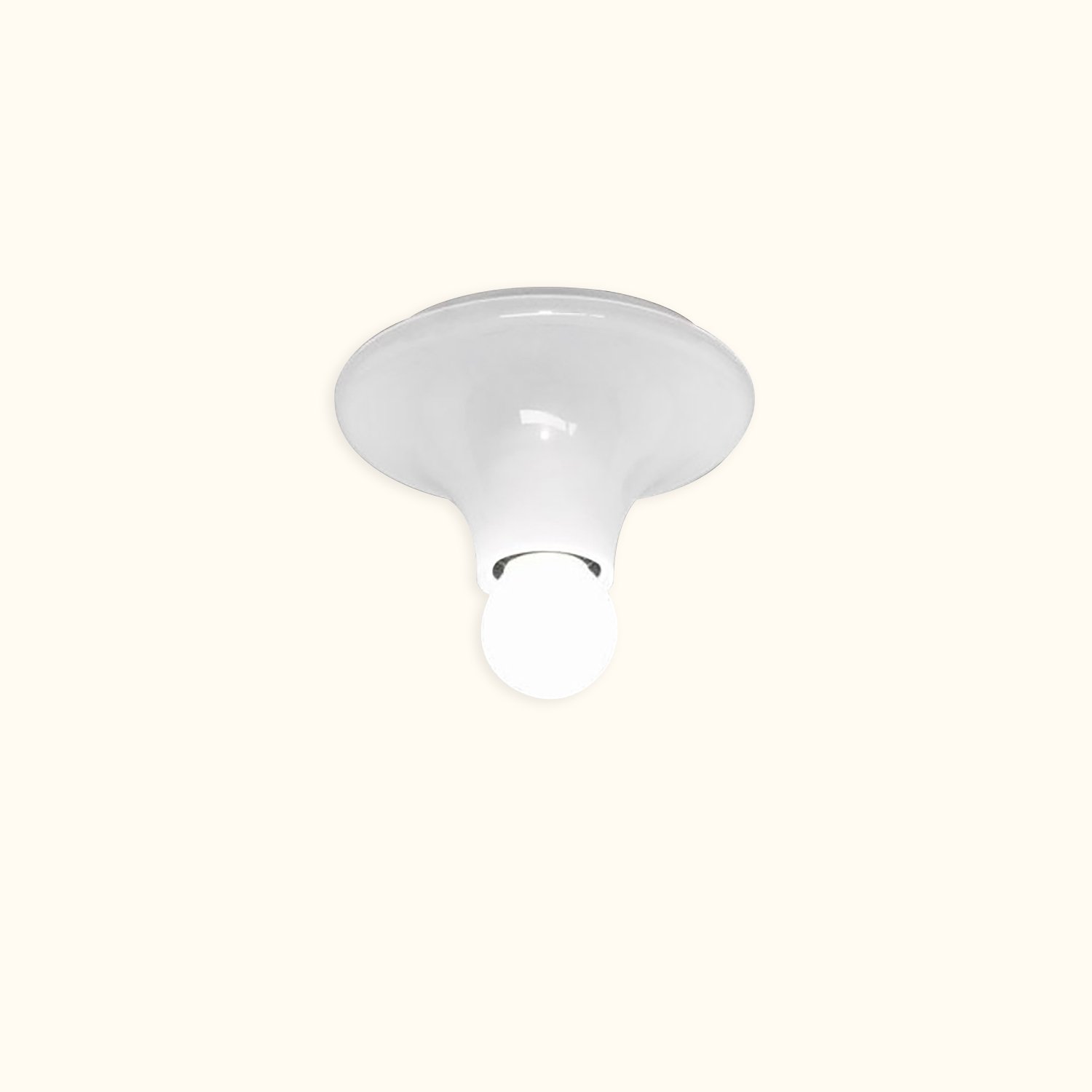This iconic lamp, designed in 1970, embodies simplicity and timeless elegance. Made from thermoplastic material, its basic structure allows for versatile use as either a ceiling or wall lamp, making it perfectly adaptable to any space. The clean lines highlight the light source, providing diffused and enveloping illumination that enhances the beauty of the room without overwhelming it.