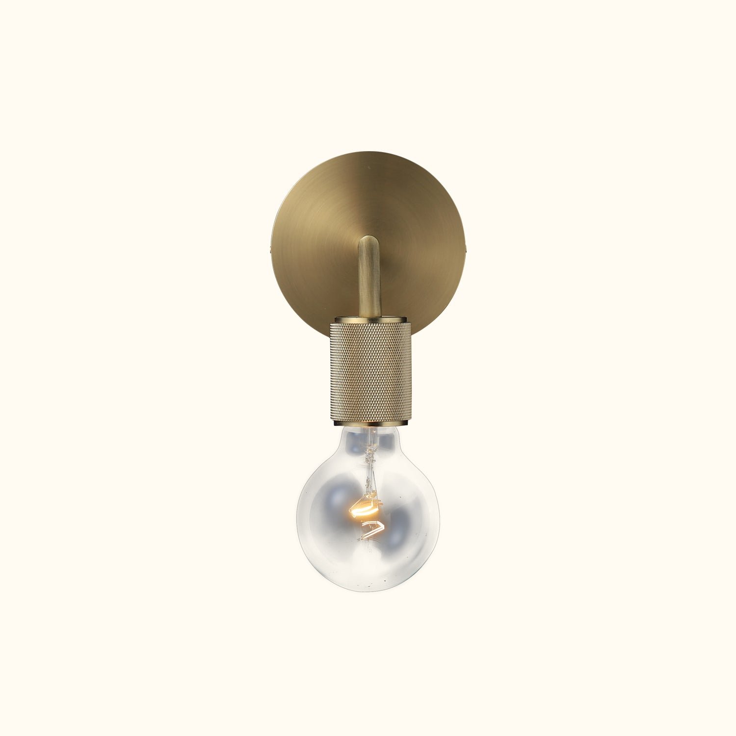 Our Utilitaire collection by Ian K. Fowler offers an elevated take on the bare bulb, blending polished sophistication with minimalist industrial design. The meticulously crafted diamond knurled texture on the socket, the striking filament bulb, and the simple clear glass shade provide a refined yet understated aesthetic.