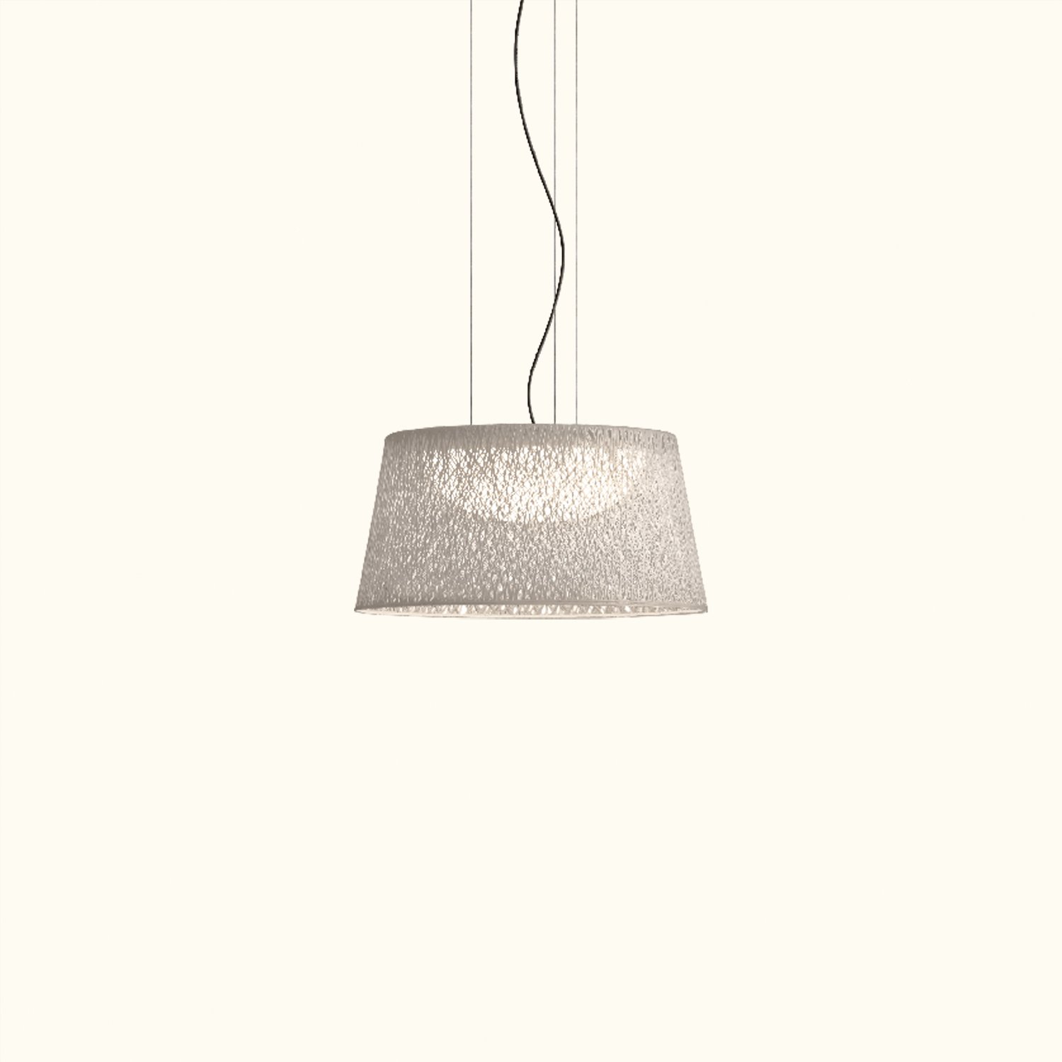 The Wind pendant light is designed with a unique character due to its design and choice of shade material. The glass fiber allows it to integrate perfectly with classical, traditional, or modern décors. This pendant light combines technology and tradition. It is available in various finishes: white, black, green, and orange.