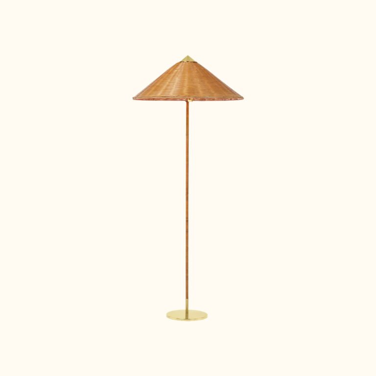 The 9602 floor lamp, also known as the “Chinese hat,” was designed in 1935. It features an elegantly airy lampshade